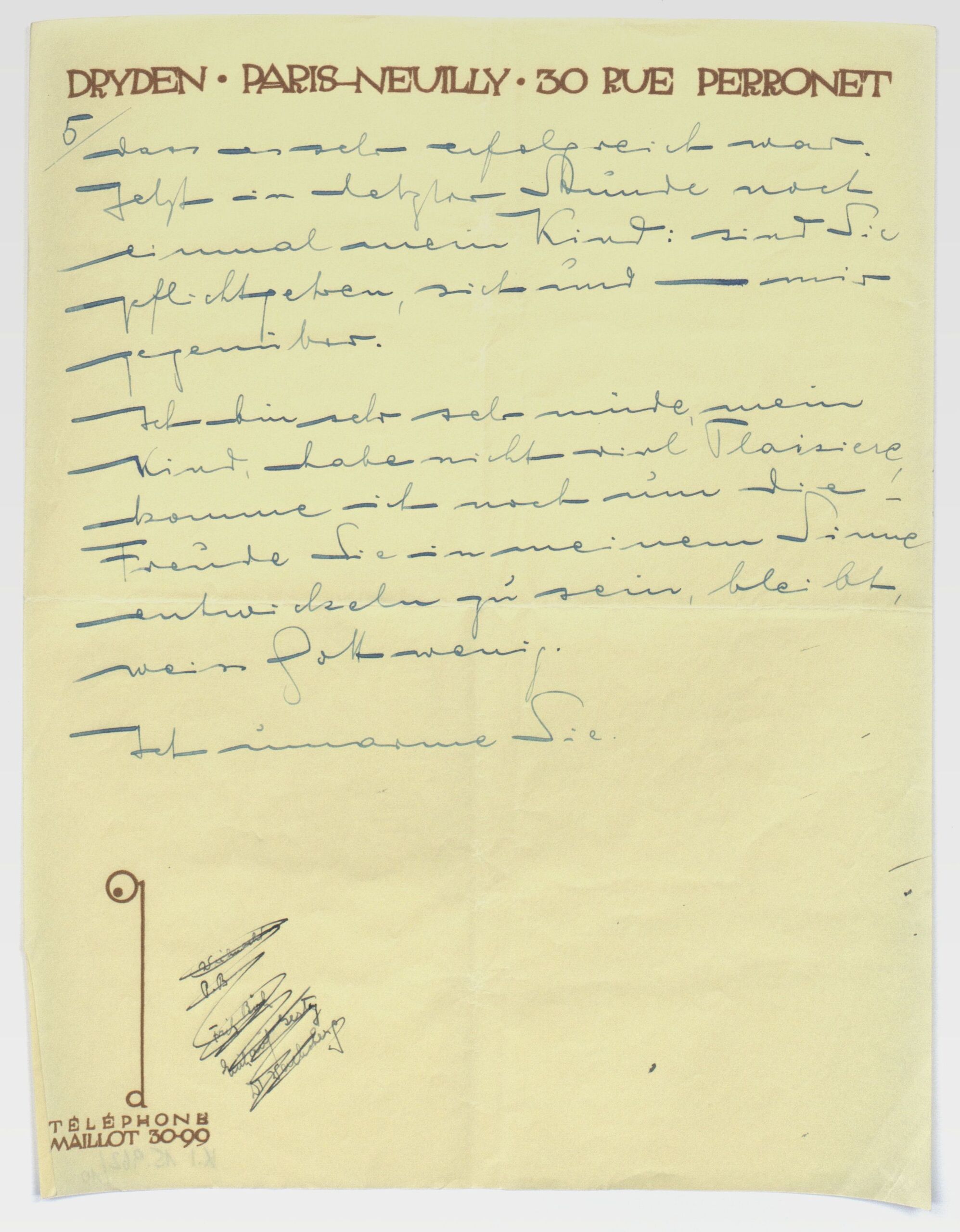 - handwriting: ... dass es sehr erfolgreich war. Jetzt in letzter Stunde noch einmal mein Kind: sind Sie pflichtgetreu, sich und mir gegenüber. Ich bin sehr, sehr müde, mein Kind, habe nicht viel Plaissiere, komme ich noch um die Freude Sie in meinem Sinne entwickeln zu sein, bleibt, weiß Gott wenig.Ich umarme Sie.
