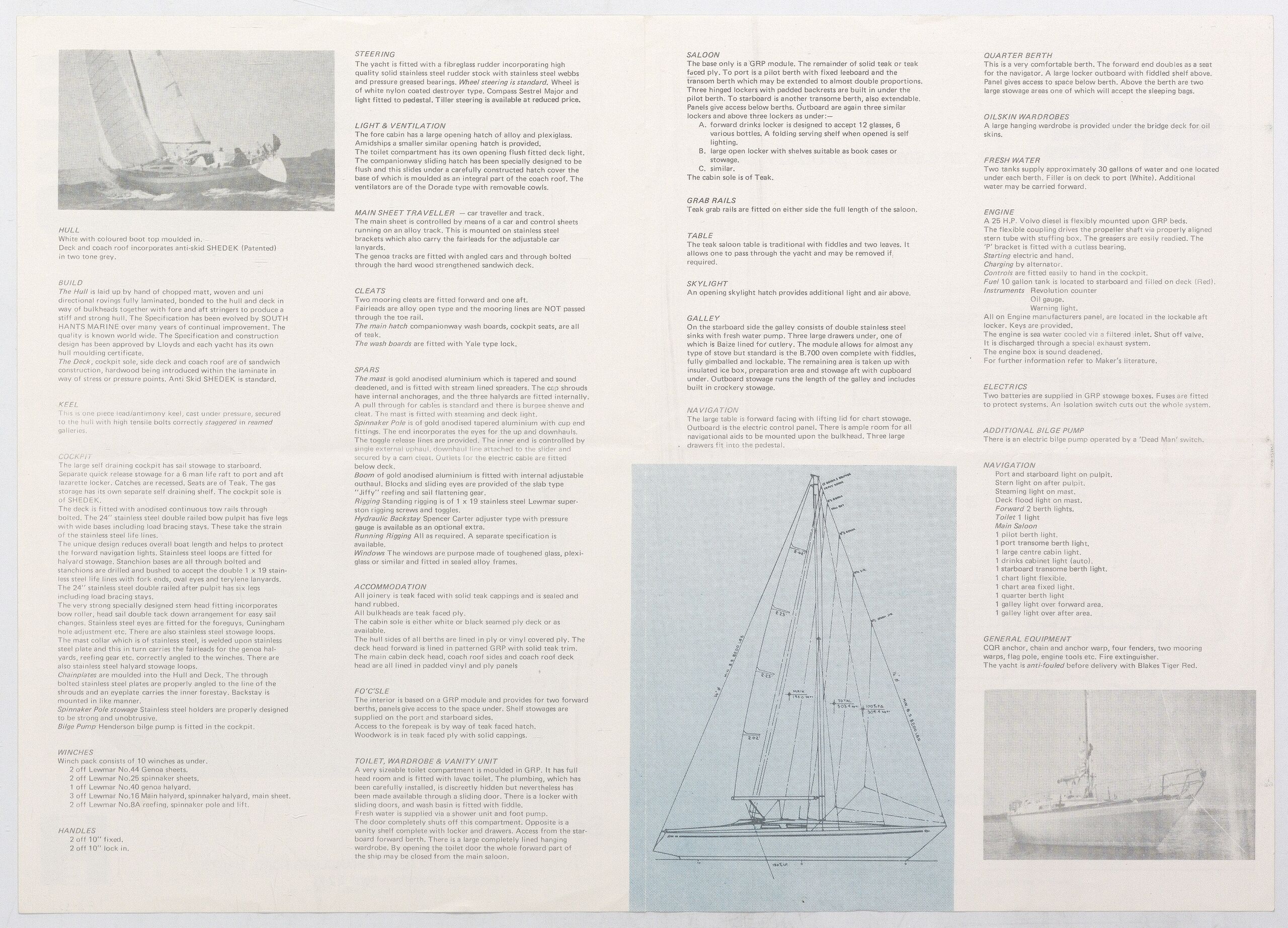 brochure, Broschüre zu der Yacht SHE 36, South Hants Marine, MAK Inv.nr. KI 16475-9-393