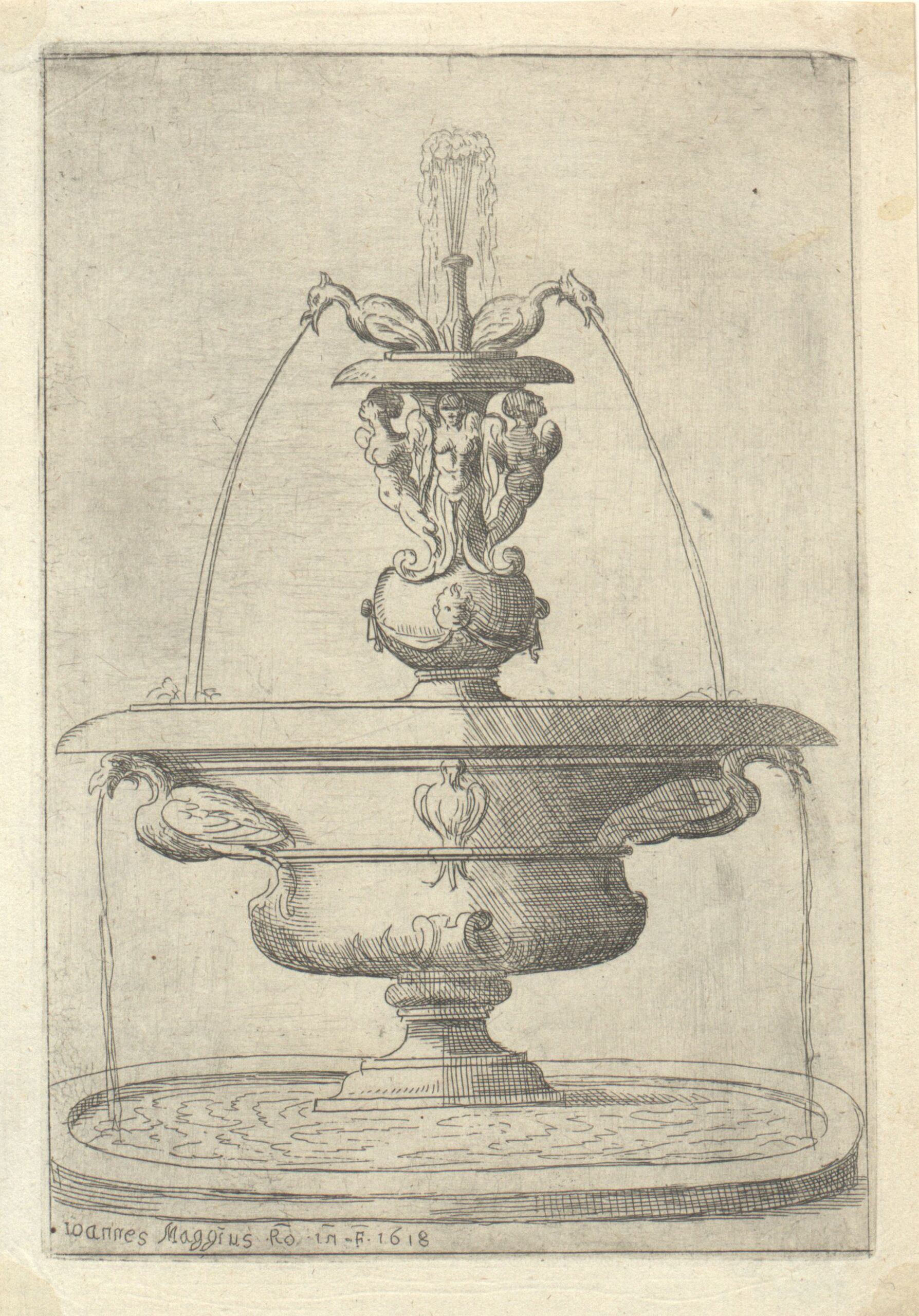 - Brunnen, Blatt aus der Folge „Nuova Raccolta Di Fontane Che Si Vedono Nel Alma Citta Di Roma Tivoli E Frascati“, herausgegeben von G. de Scachi (given title)