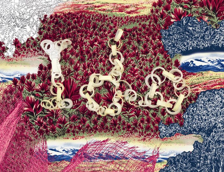 - typography, Druck nach einer Zeitschriftenillustration mit Detailansicht des Entwurfes "Back" aus der Serie "Everything I do always comes back to me"