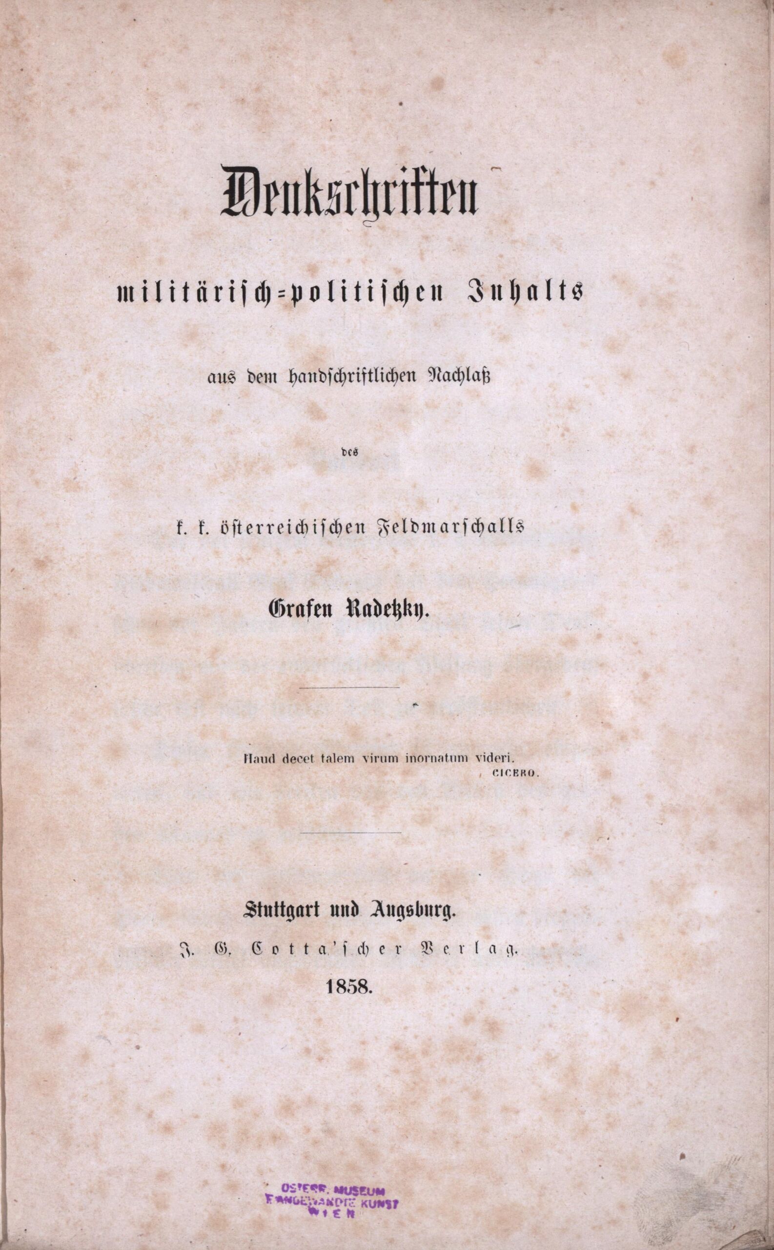 - Denkschriften militärisch-politischen Inhalts aus dem handschriftlichen Nachlaß des k.k.österreichischen Feldmarschalls Grafen Radetzky