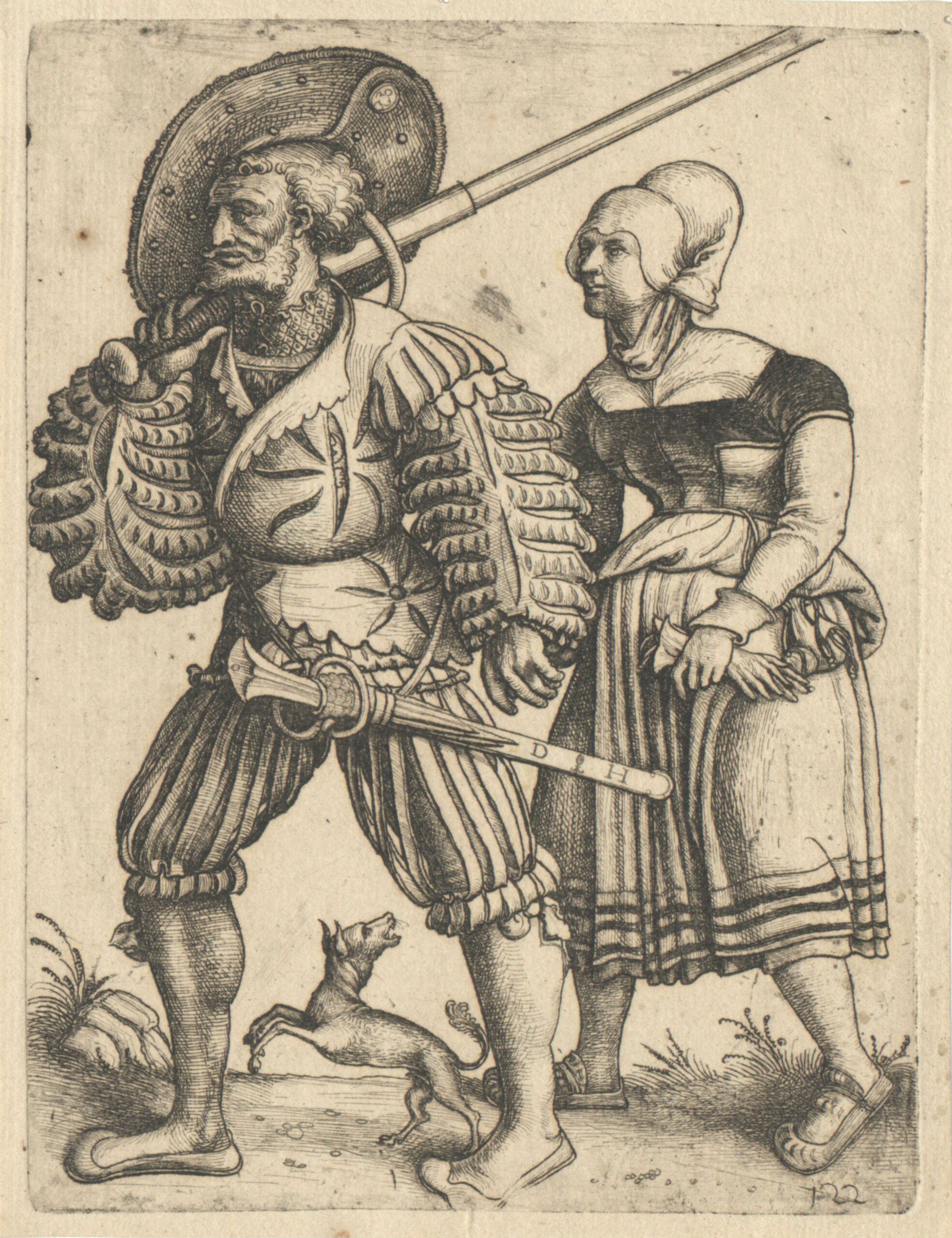Druckgrafik, Der Soldat mit seiner Frau, mit Funck- Nummer 122, Daniel Hopfer, MAK Inv.nr. KI 907