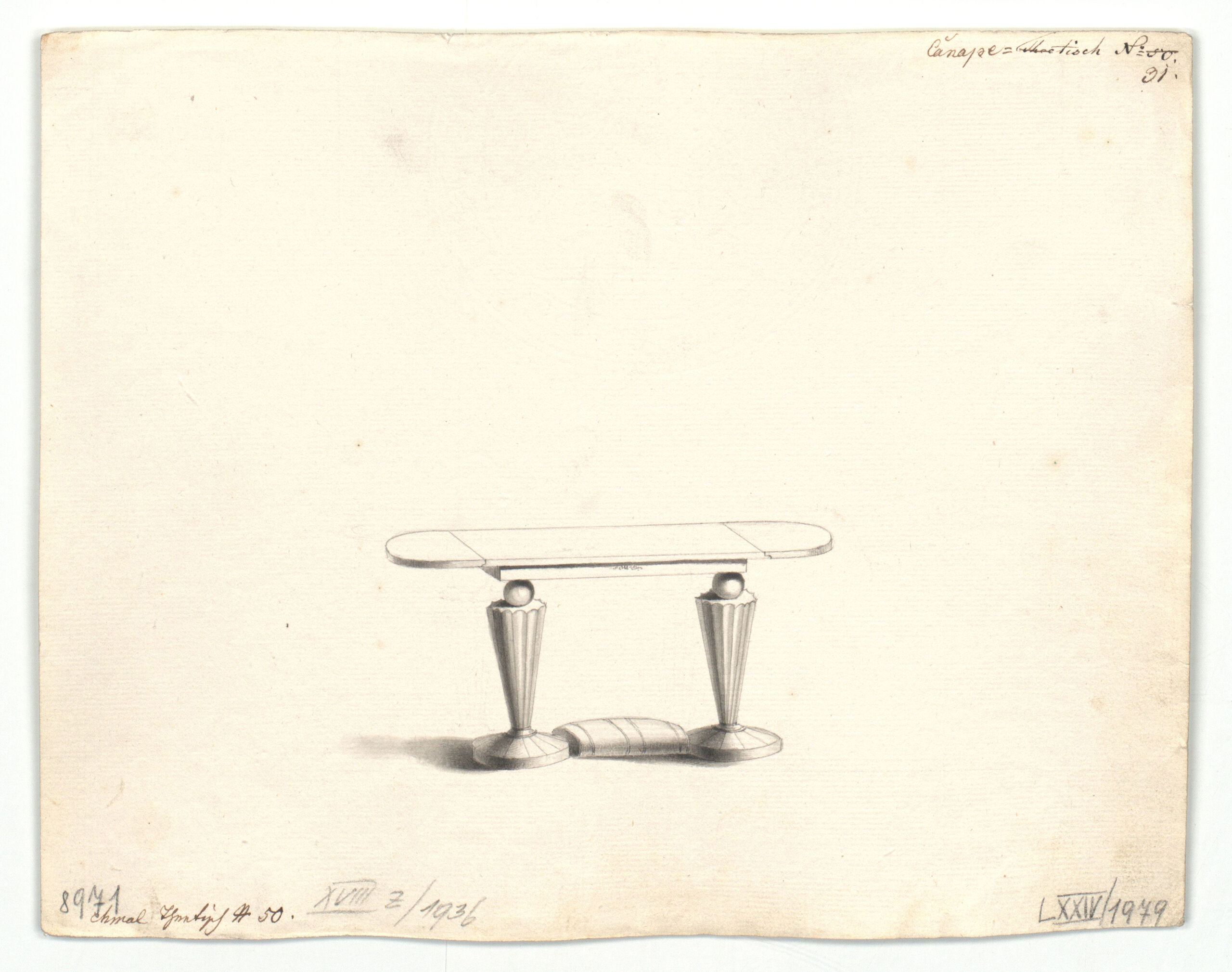 - 作品に記載されている文章: "Canapetisch N° 31" sowie "ehmal Theetisch N° 50"