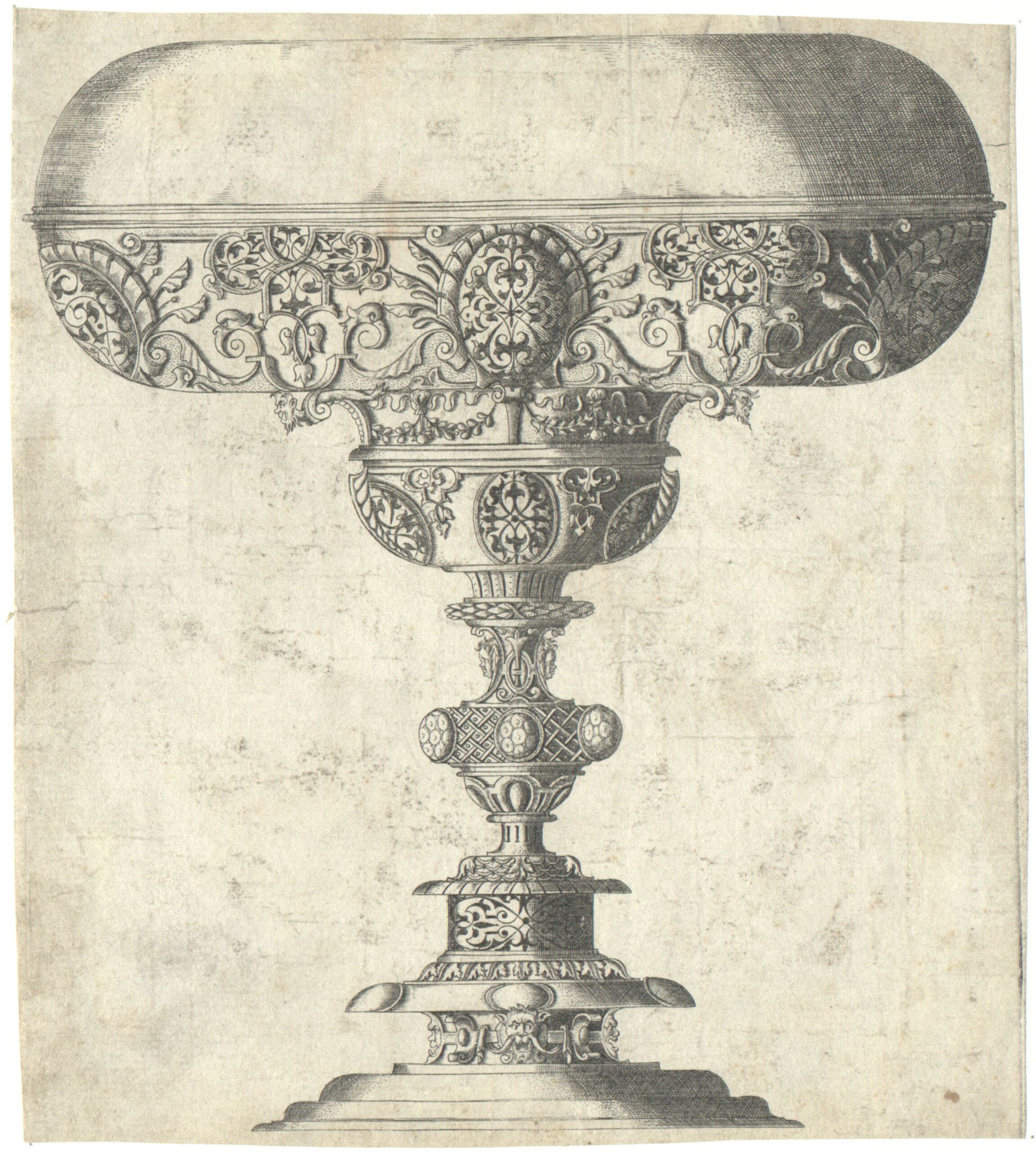 - Ein Deckelpokal, Blatt aus der Folge: „Insigne ac plane novum opus cratero graphicum ... Ein new Kunstbuch darjnnen kunstreiche contra fect und bildnus vom allerley Trinckgeschirrn, Credenzen und Becherm etc.”, Mathias Zündt zugeschrieben (given title)