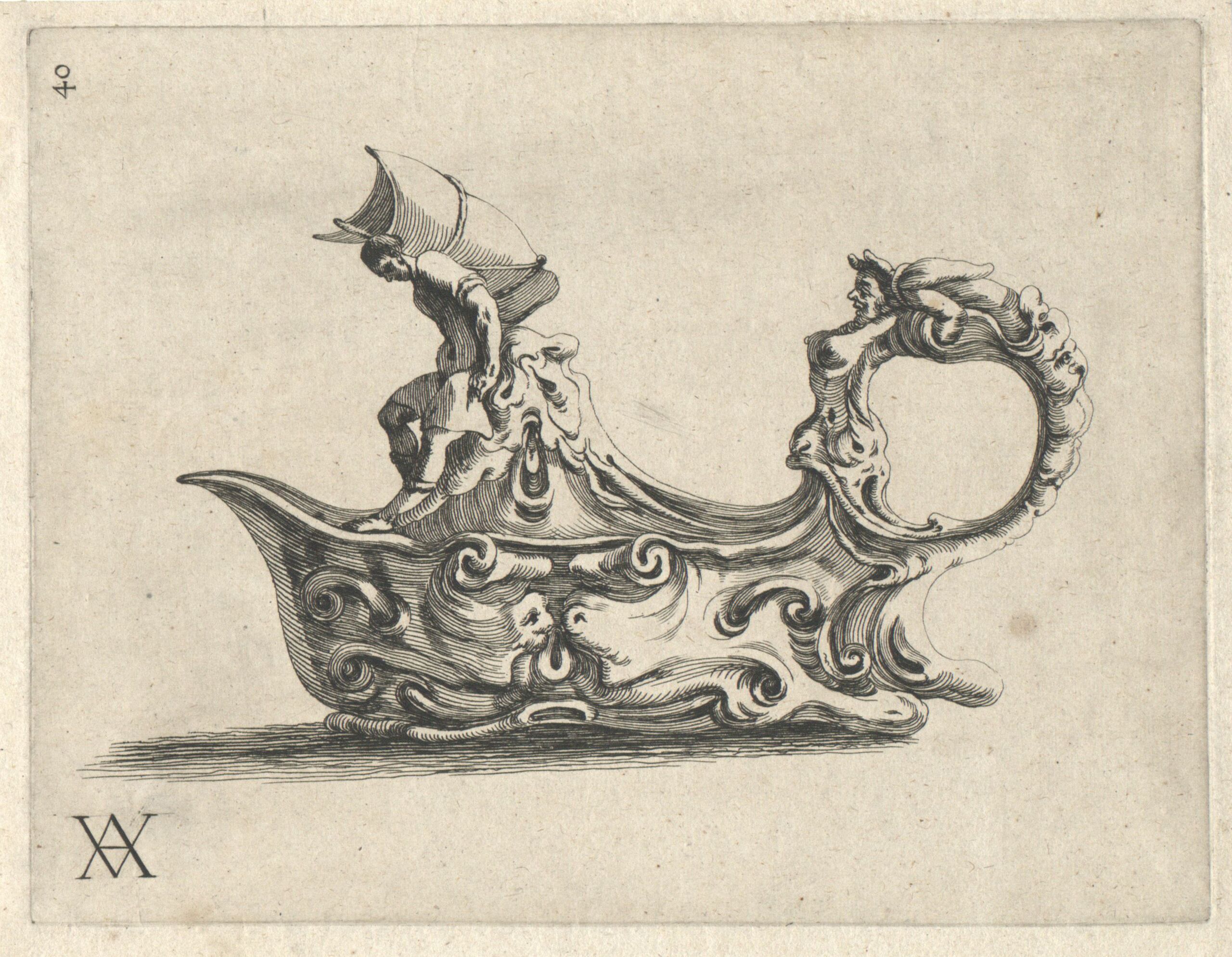 - Ein Gefäß, Blatt 40 aus der Folge „Modelli Artificiosi ... Modelles Artificiels ... Constighe Modellen Van verscheyden silvere Vasen etc.“, herausgegeben von C. van Vianen (given title)