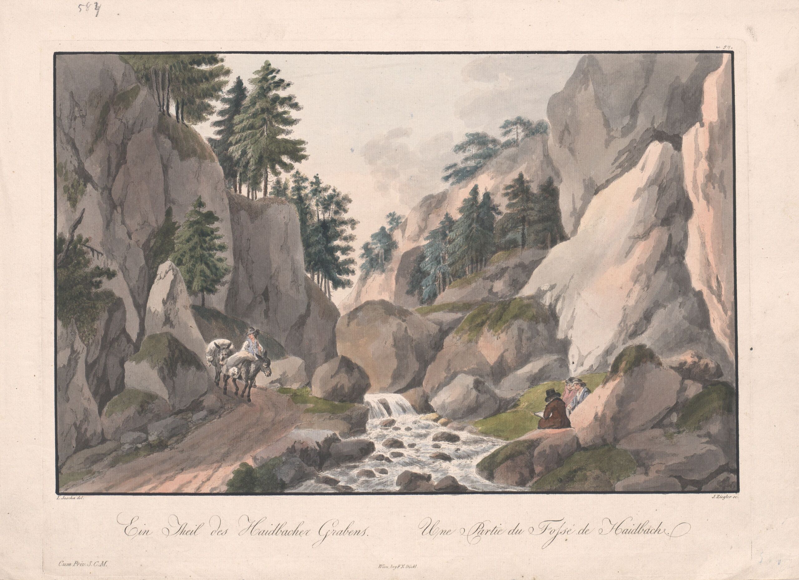 - 作品に記載されている文章: Ein Theil des Haidbacher Grabens. / Une Partie du Fossé de Haidbach. / L. Janscha del., J. Ziegler sc. / Wien, bey F X Stöckl