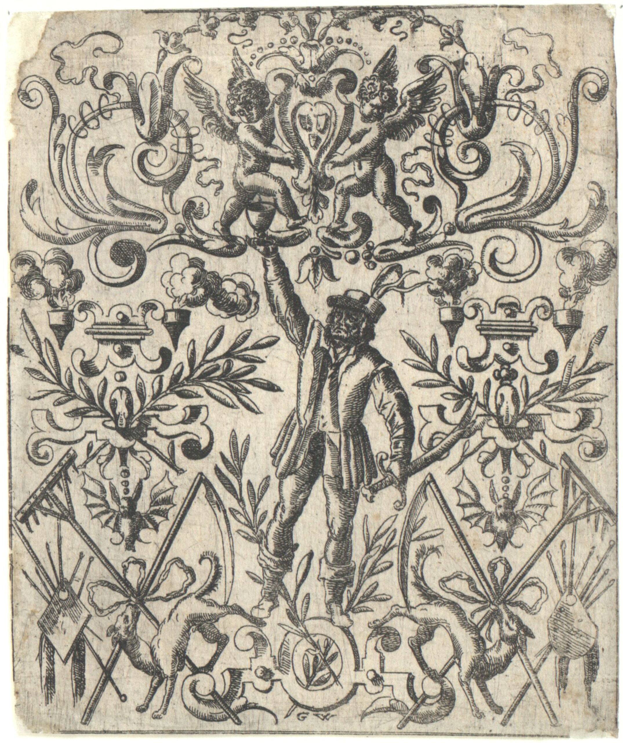 - Ein Zecher umgeben von Ornamenten, Blatt aus der Folge „Neuw Grotesken Buch“ (given title)