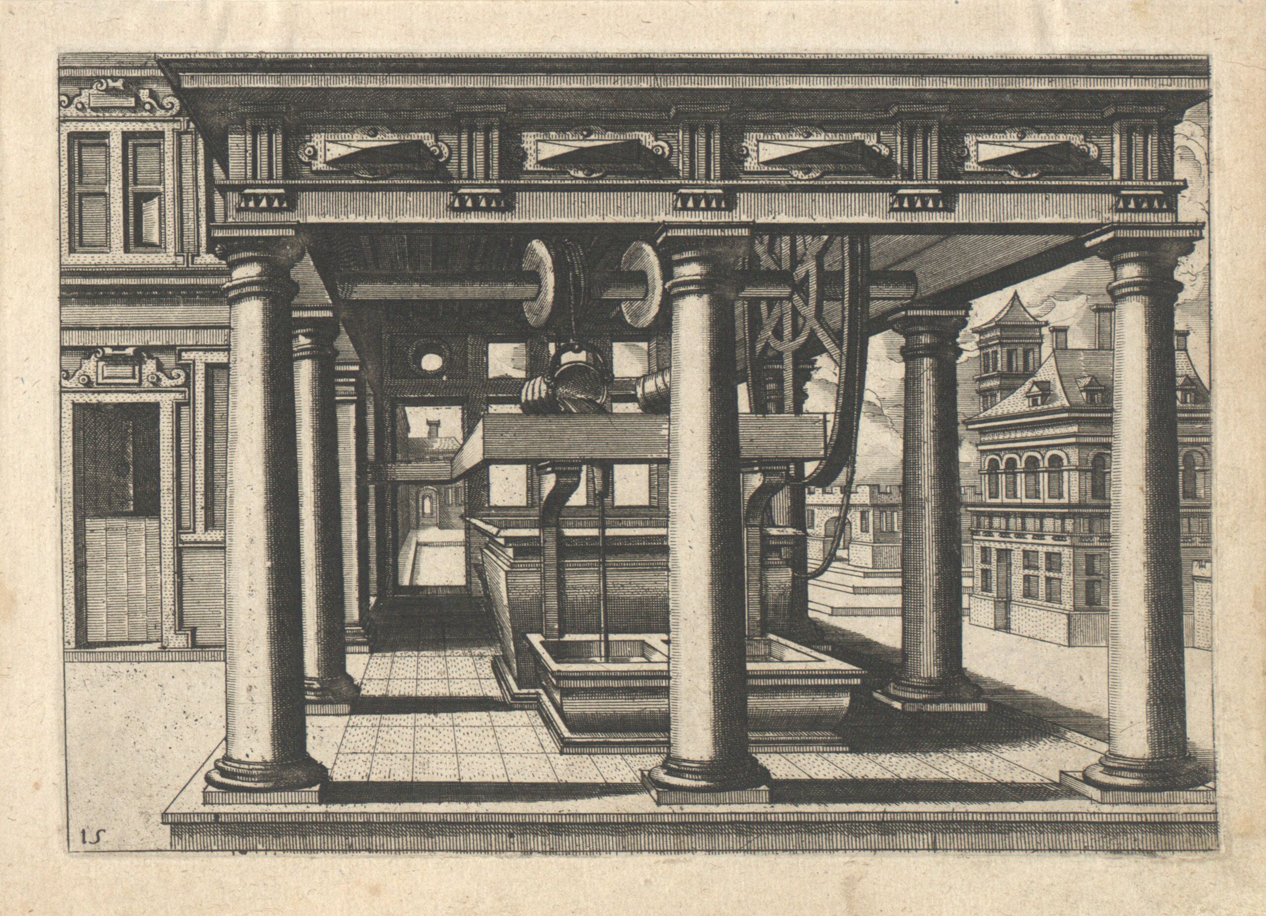 architectural rendering, Ein Ziehbrunnen, Blatt 15 aus der Folge der kleinen Brunnen, herausgegeben von Ph. Galle, Hans Vredeman de Vries, MAK Inv.nr. KI 1-955-15