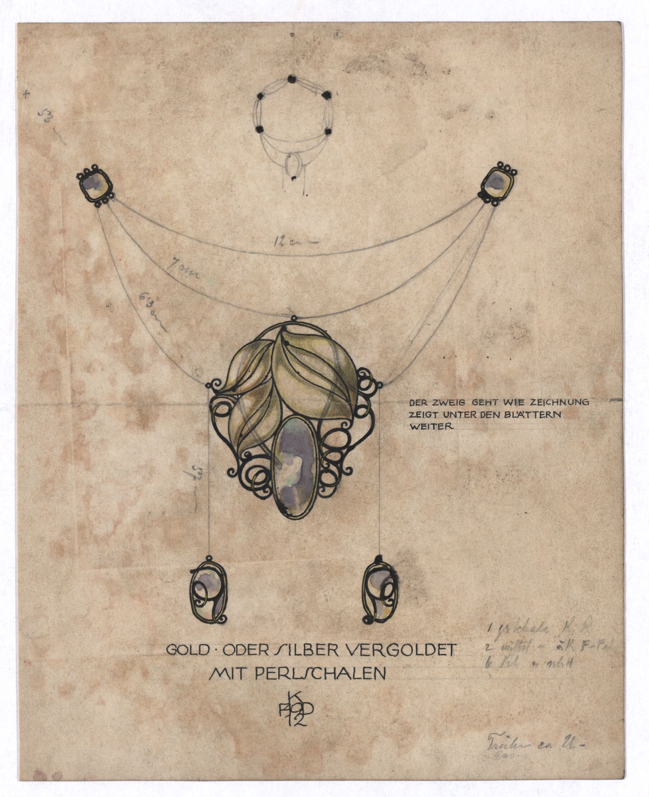 ăă¶ă€ăł, Entwurf eines Colliers mit Perlschalen, Franz Karl Delavilla, MAK Inv.nr. KI 14676-27