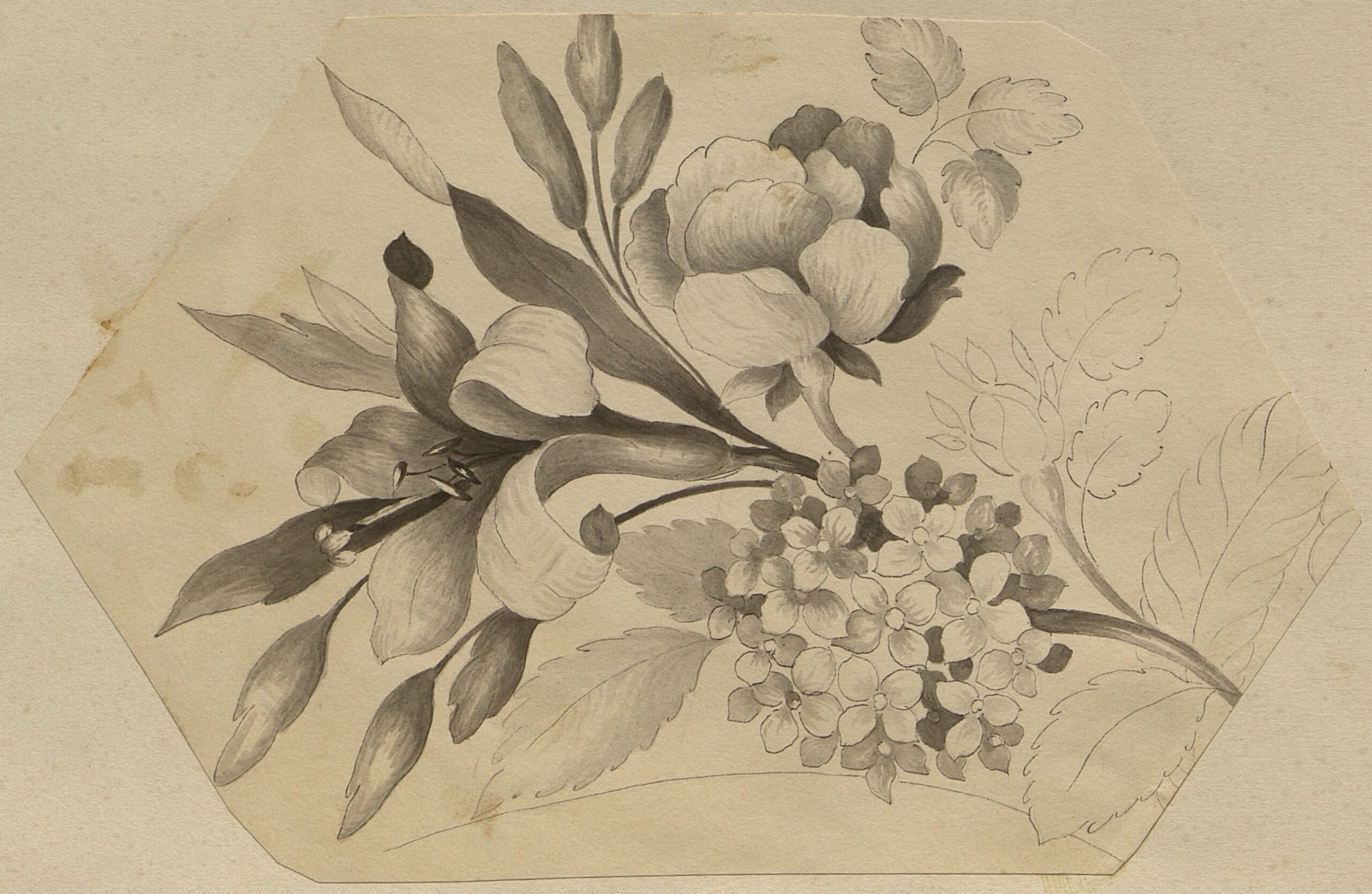 デザイン, Entwurf eines dekorativen Elements für eine Goldschmiedearbeit mit Pflanzenmotiven von Wilhelm Hermann Haarstrick, Wilhelm Haarstrick, MAK Inv.nr. KI 8076-3-37