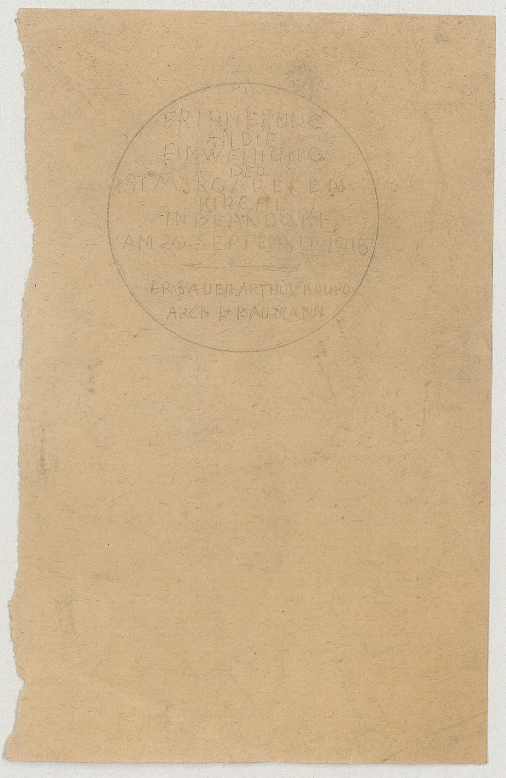 - Entwurf für eine Medaille anlässlich der Einweihung der St. Margaretenkirche in Berndorf am 20. September 1916 (vom Bearbeiter vergebener Titel)