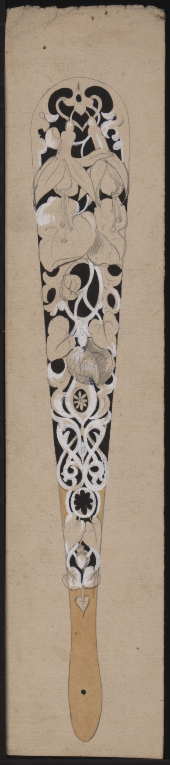 Entwurf für einen Fächerbügel mit floraler Ornamentik.