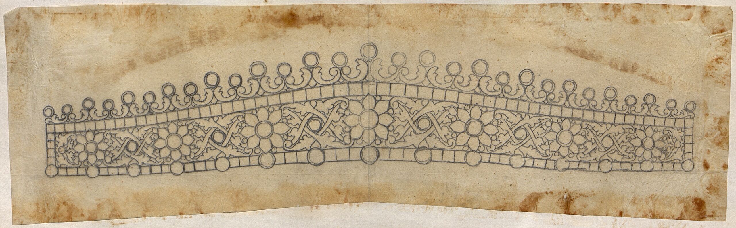 jewelry design, Entwurf zu einem Diadem mit symmetrischen stilisierten Blattranken-, Blüten- und Blütenkelchornamenten von Wilhelm Friedrich Haarstrick, Wilhelm Friedrich Haarstrick, MAK Inv.nr. KI 8076-4-12