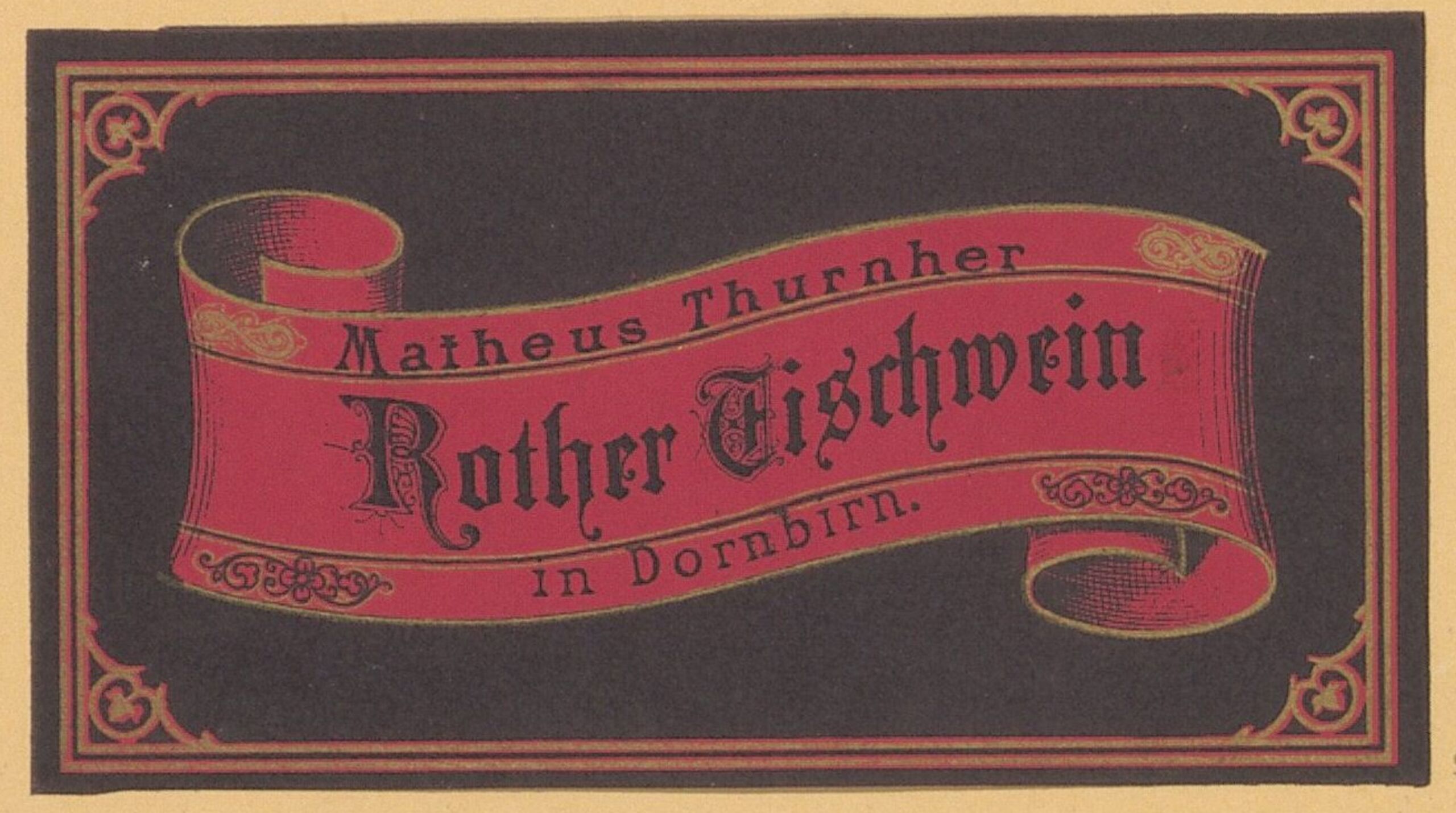 - Etikett für Rother Tischwein von Matheus Thurnher in Dornbirn (given title)