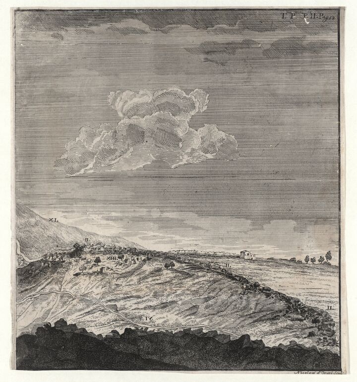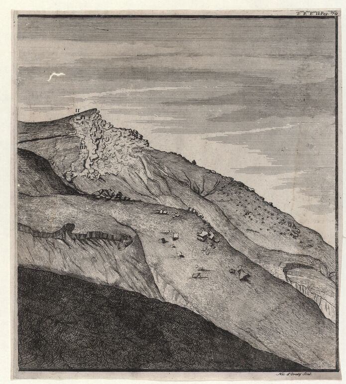 - 作品に記載されている文章: Veduta della rupe atenea della parte, che guarde settentrione / To John Malpas Esq.r / Salvat. Ettore delin., Nic d’ Oraty Scul.