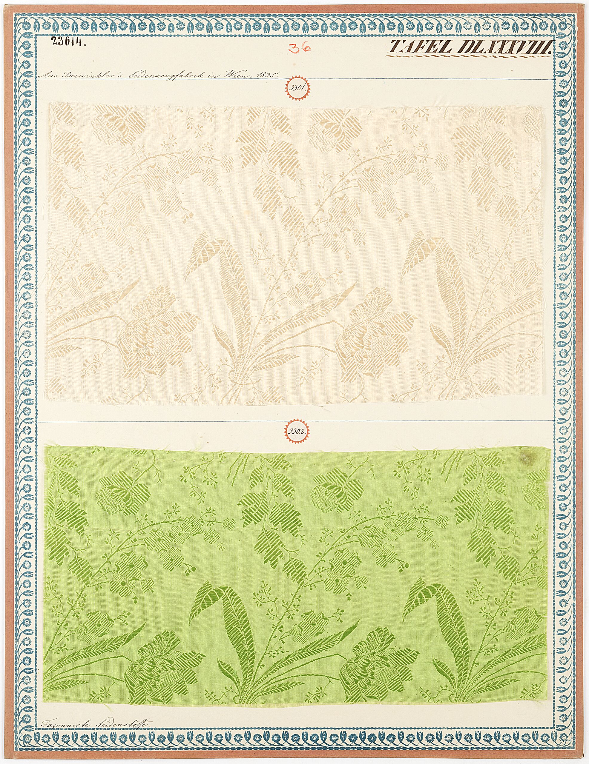 - label (front) : Aus Beiwinkler's Seidenzeugfabrik in Wien, 1835. / Façonnirte Seidenstoffe.