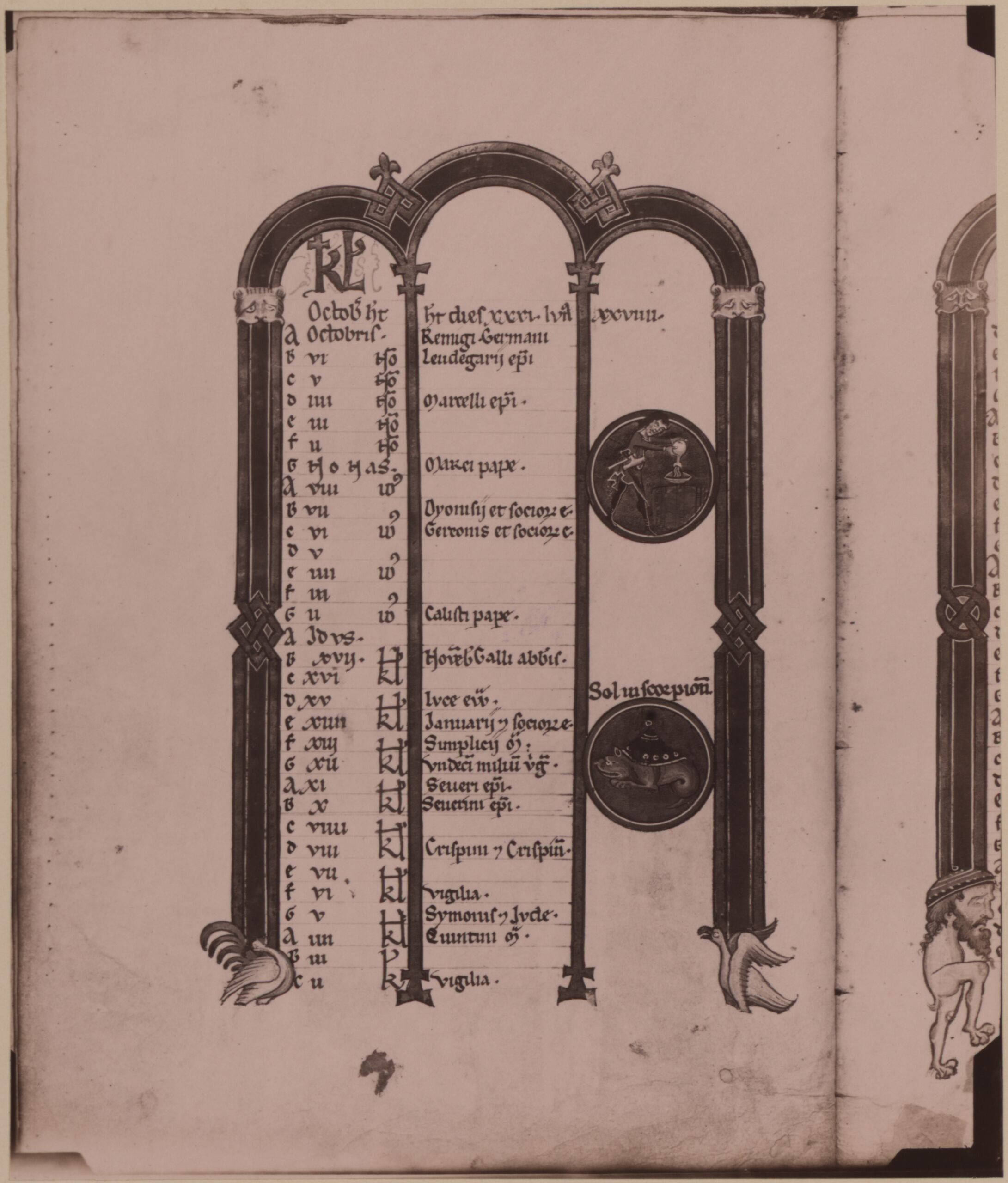 photograph, Fotografie der Seite "Oktober" aus einem Kalendarium aus dem 13. Jh., in einem Gebetsbuch des Stiftes Melk in Niederösterreich, Victor Angerer, MAK Inv.nr. KI 5769-119