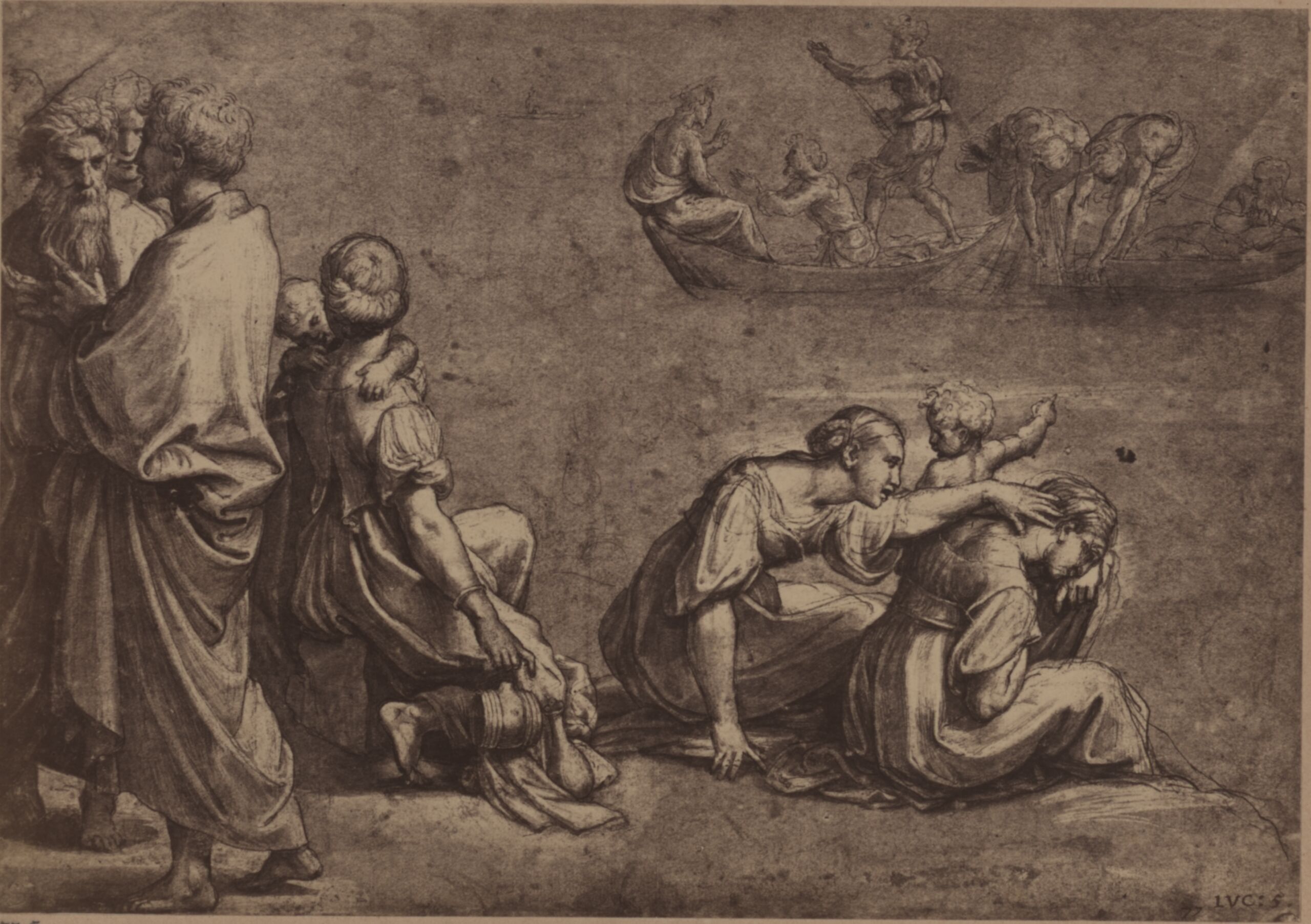- Fotografie der Zeichnung "Der wunderbare Fischzug mit Volksmenge im Vordegrund" von Raffael (given title)