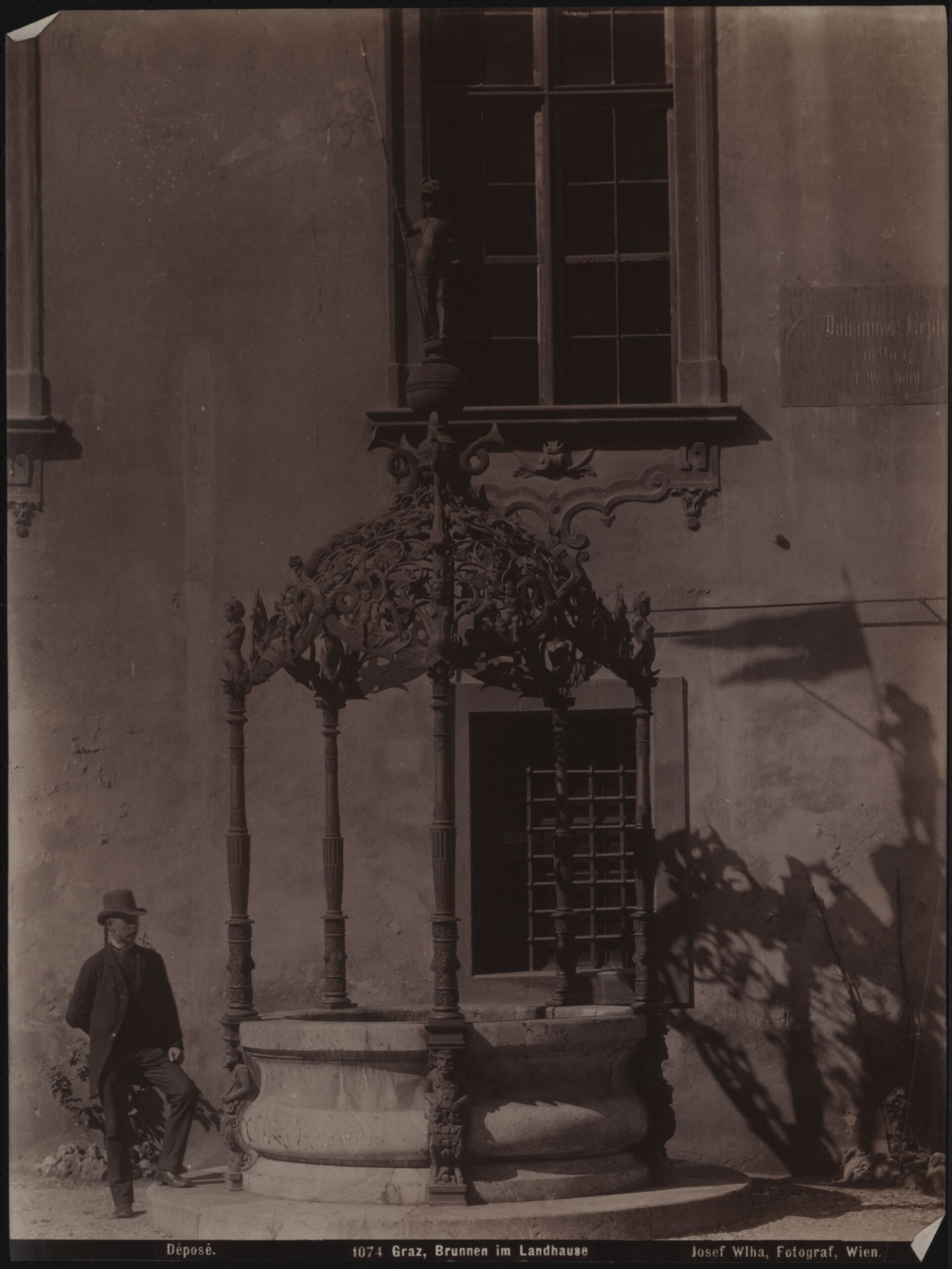 - 作品に記載されている文章: [unten]: Déposé. 1074 Graz, Brunnen im Landhause Josef Wlha, Fotograf, Wien.