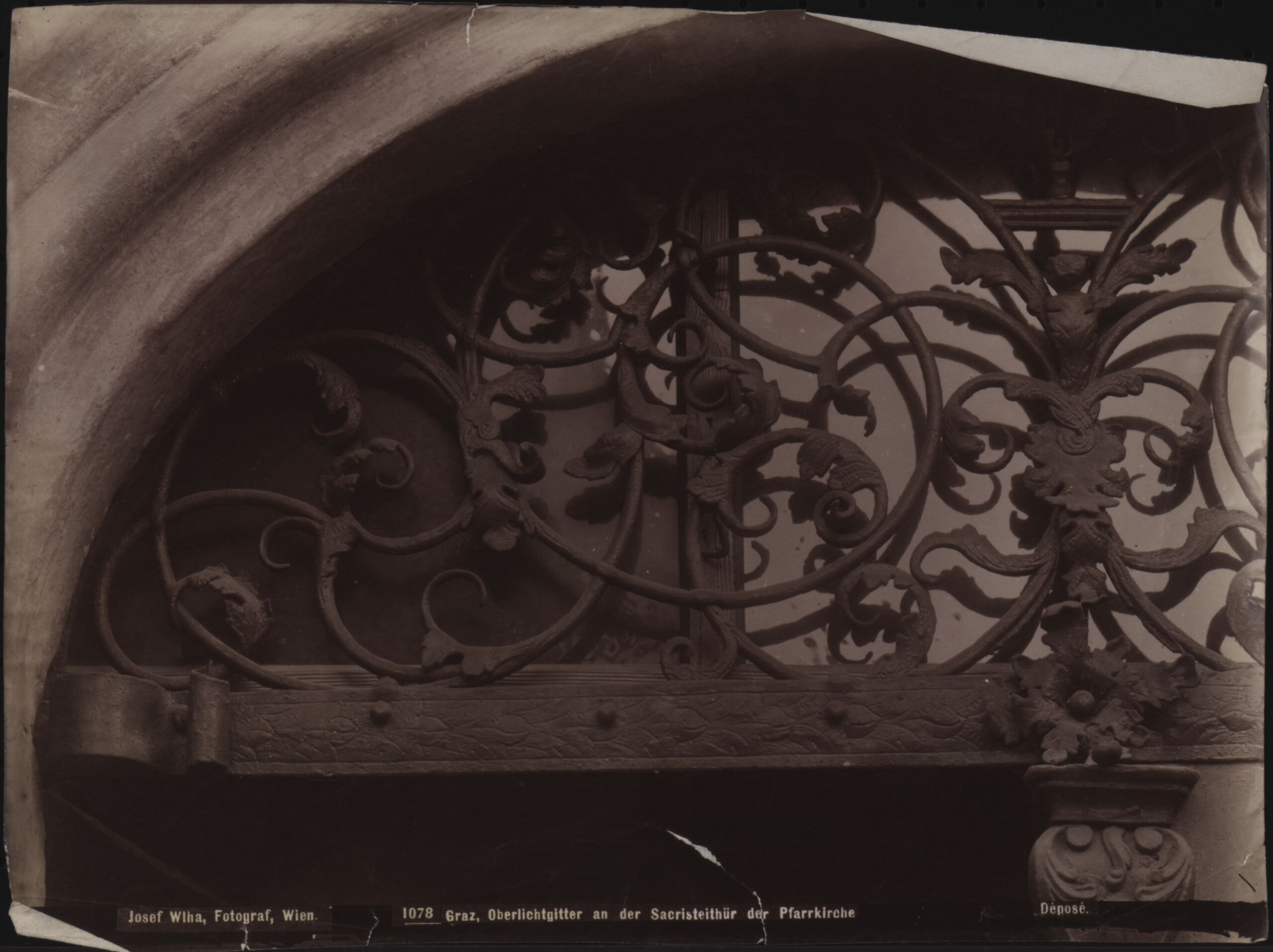 - äœćă«èšèŒăăăŠăăæç« : [unten]: DĂ©posĂ© 1078 Graz, Oberlichtgitter an der SacristeithĂŒr der Pfarrkirche Josef Wlha, Fotograf, Wien.