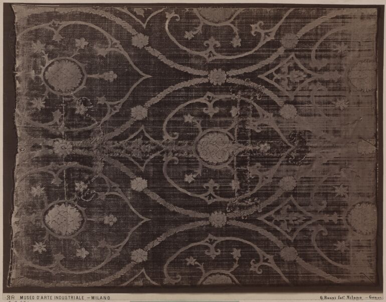 - 作品に記載されている文章: [links]: 195 MUSEO D'ARTE INDUSTRIALE – MILANO [rechts]: G. Rossi fot. Milano - Genova [Untersatzkarton, mittig, geklebt]: (A.) Cofanetto in ferro scolpito. - Secolo XV. / alt. 0.10 / Brambilla Dott. Luigi. / (B.) Battiporta in ferro - Secolo XVI. / Mainoni Nob. Massimo. [Untersatzkarton, links]: Kassette aus Schmiedeeisen, 14. Jhdt. [Untersatzkarton, rechts]: Eiserner Türklopfer, 16. Jhdt.
