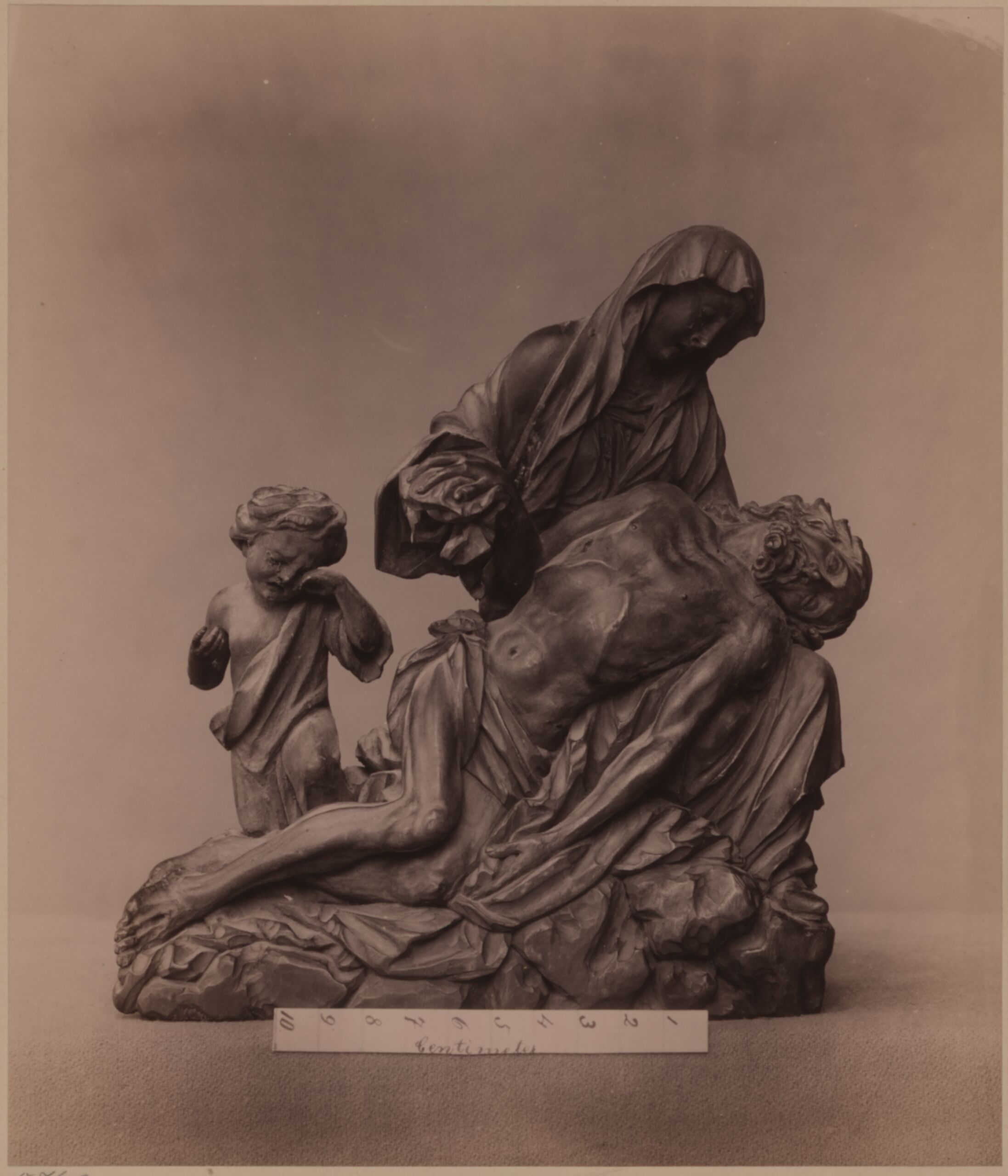 photograph, Fotografie einer Holz-Figurengruppe der Pietà mit weinendem Engel, aus der Pfarre St. Martin in Villach aus dem 18. Jh., Victor Angerer, MAK Inv.nr. KI 5769-104