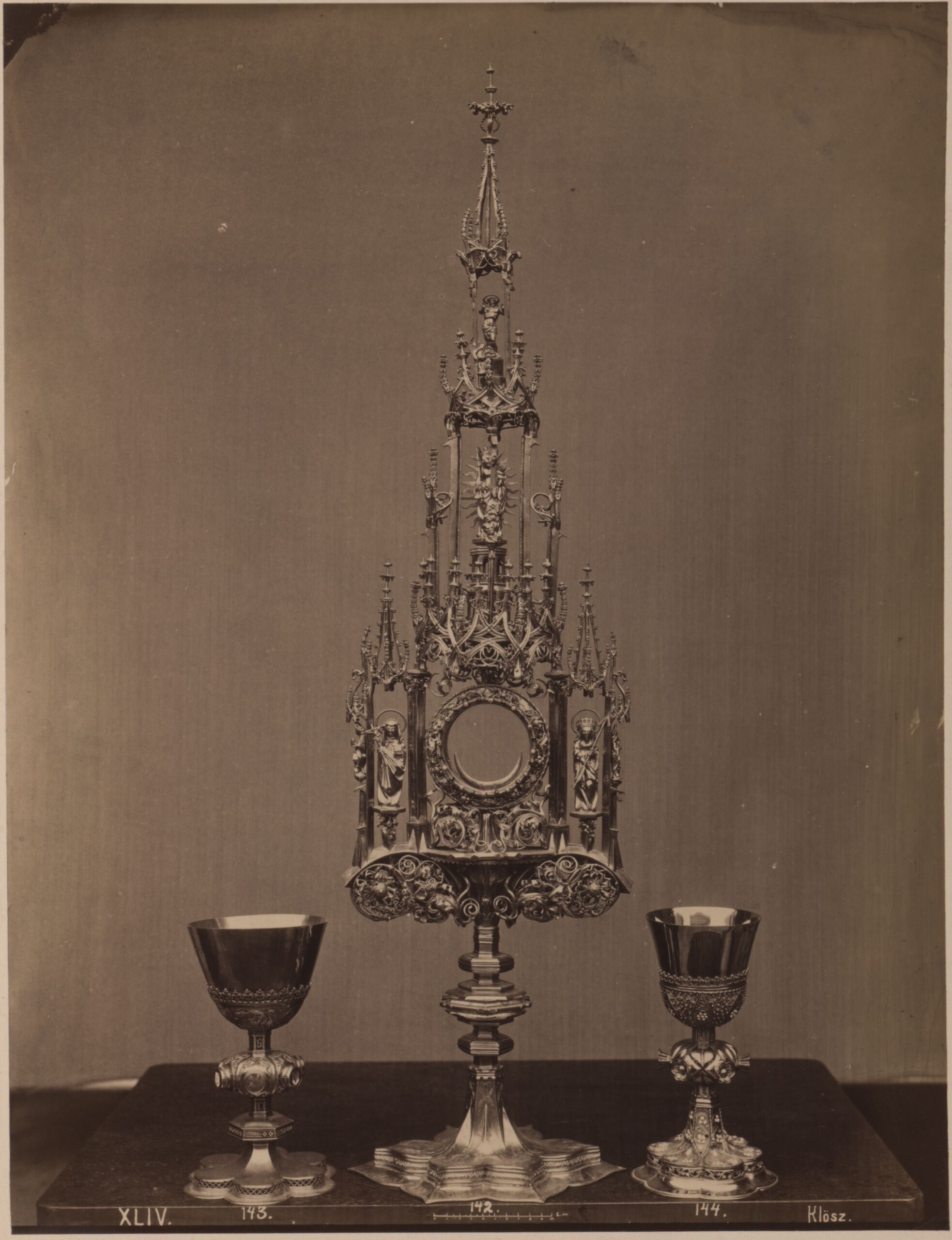 photograph, Fotografie einer Monstranz von 1515 und zweier Kelche aus der Diözese in Raab, György Klösz, MAK Inv.nr. KI 5048-14
