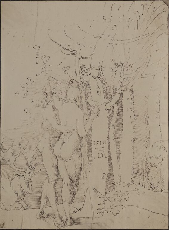 - Text am Objekt (mittig oben) : - 1501 - AD [Monogramm: Albrecht Dürer]