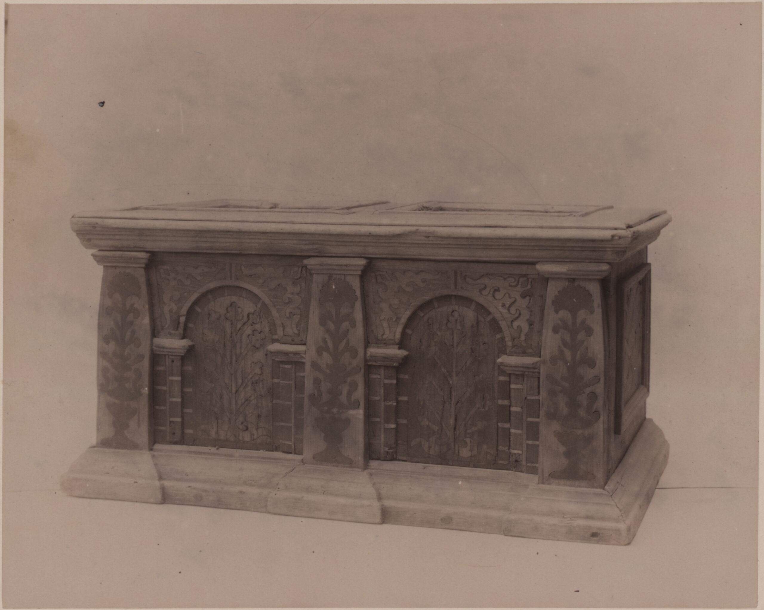photograph, Fotografie einer verzierten Holztruhe aus dem Pustertal, Tirol, Wilhelm Gmeiner, MAK Inv.nr. KI 7717-358