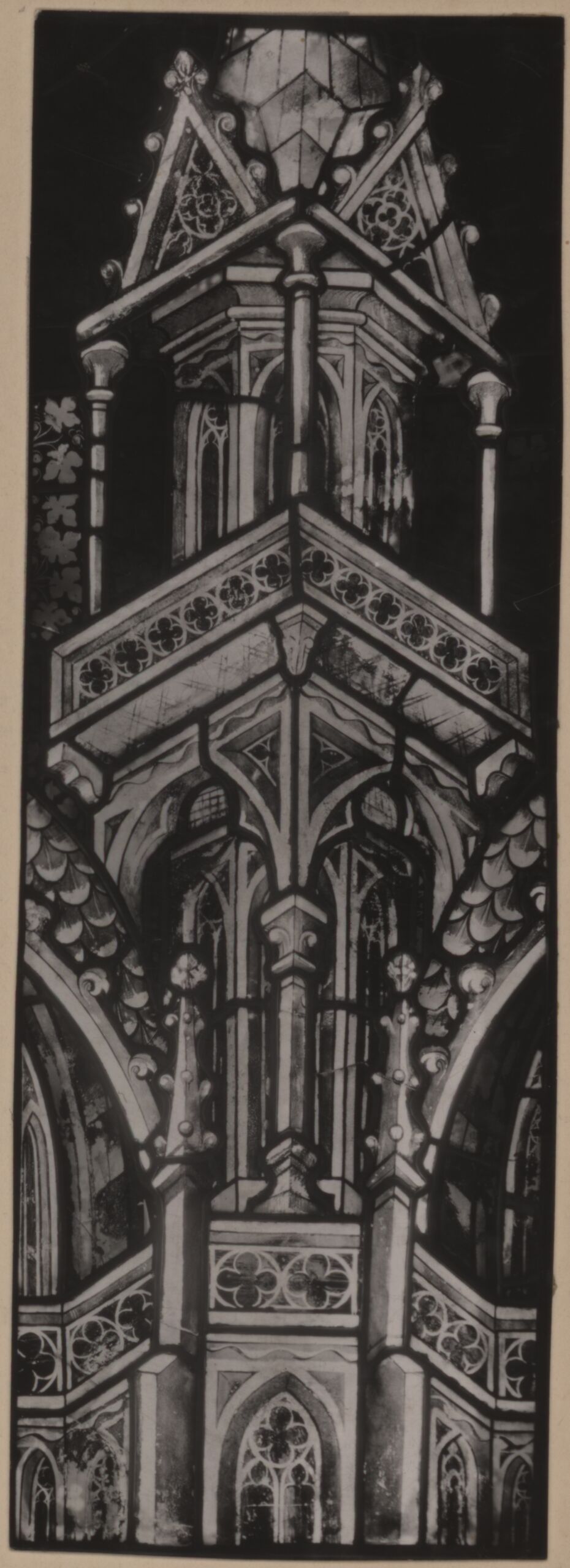 photograph, Fotografie eines Details einer Glasmalerei aus dem Stephansdom mit einer Architekturdarstellung, 1375-1400, Österreichische Lichtbildstelle, MAK Inv.nr. KI 9256-7-2