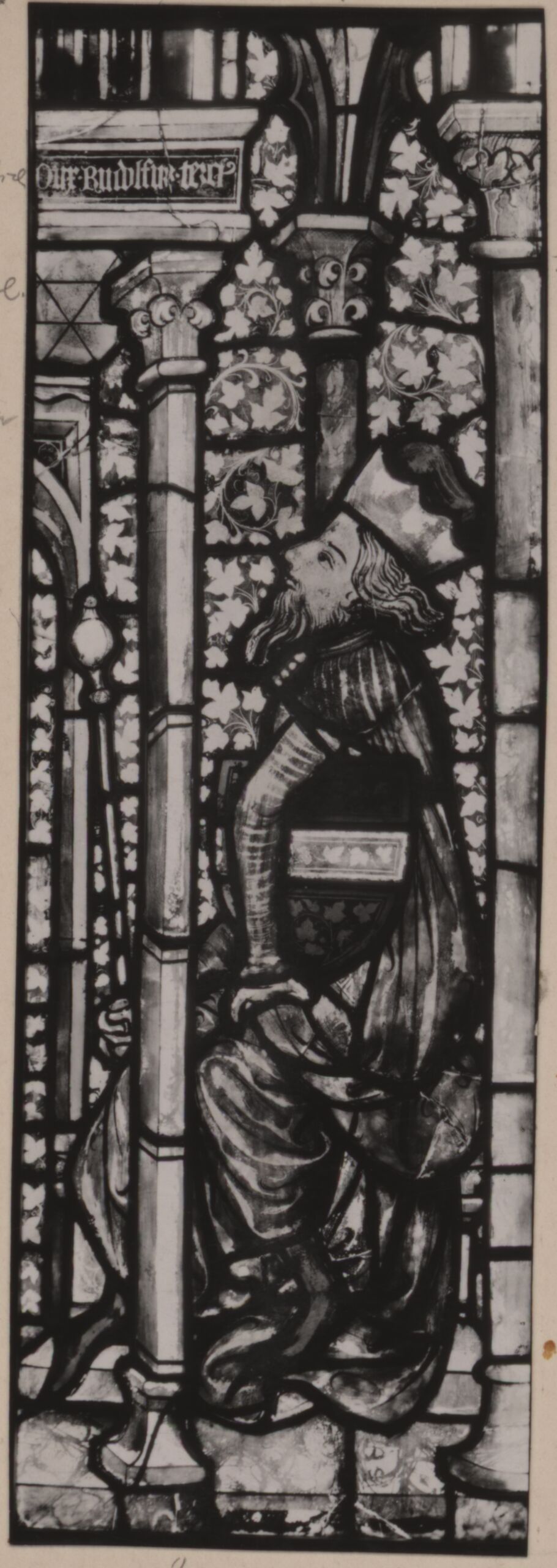 - Fotografie eines Details einer Glasmalerei aus dem Stephansdom mit einer Fürstendarstellung, 1375-1400 (given title)
