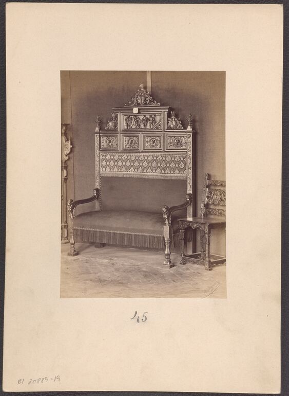 - Insgesamt 62 Fotografien von Objekten aus der Ausstellung alter Möbel und Einrichtungsstücke vom 15.-19. Jahrhundert im k. k. Österr. Museum für Kunst und Industrie im Mai 1874. (title addition)