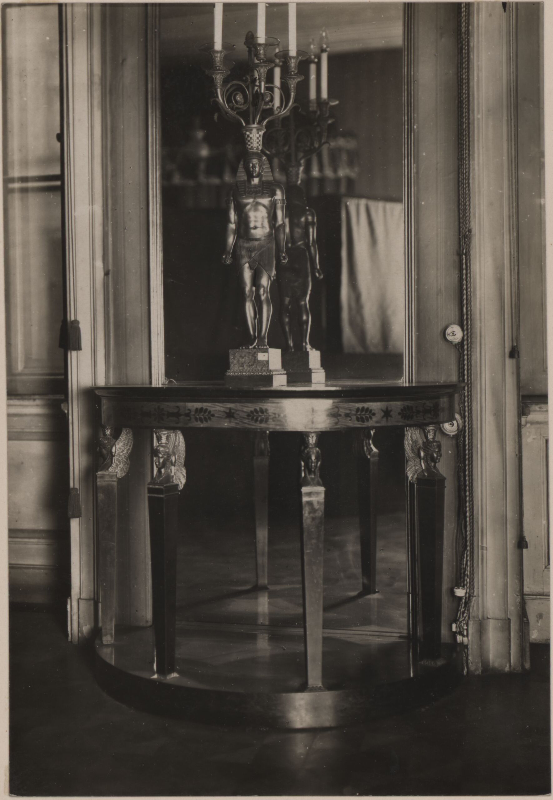 - Fotografie eines Konsoltisches mit einem Kerzenleuchter in Forme eines ägyptischen Mannes aus der Sammlung von Graf Janos Palffy, Wien (given title)