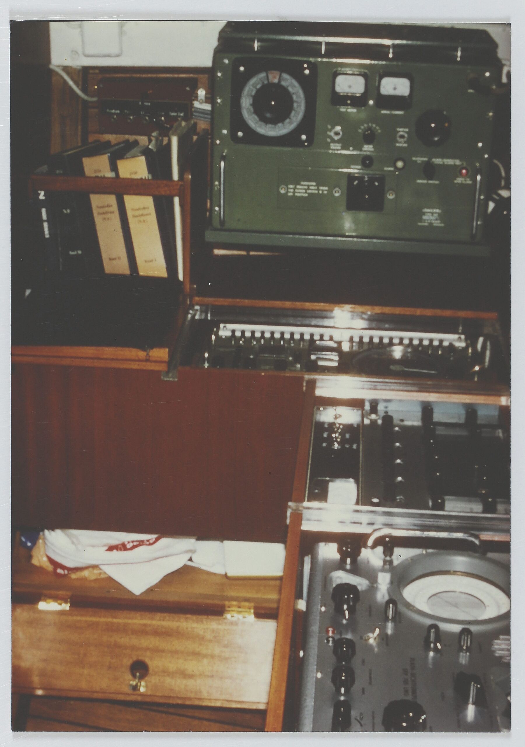 photograph, Fotografie eines Plattenspielers, von Navigationsgeräten und Schiffsinstrumenten in einer Segelyacht von Wolfgang Denzel, Romuald A. D. Kutscher, MAK Inv.nr. KI 16475-16-38-41