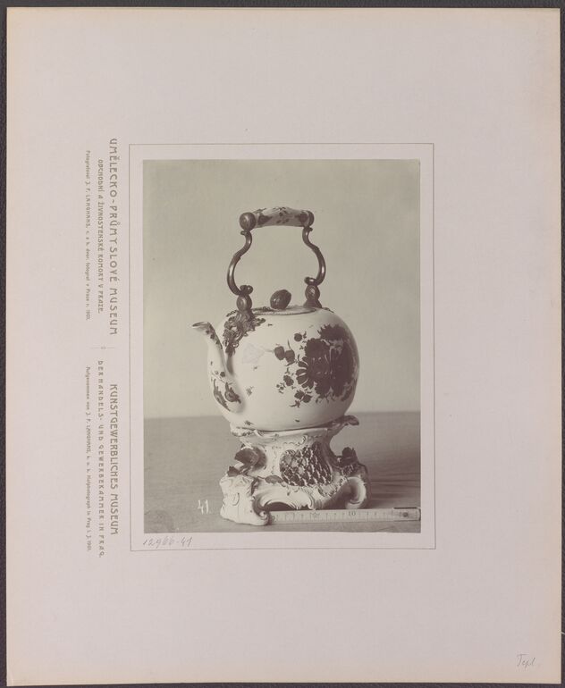 - 作品に記載されている文章: [Untersatzkarton, links unten]: UMĚLECKO-PRŮMYSLOVÉ MUSEUM / OBCHODNÍ A ZIVNOSTENSKÉ KOMORY V PRAZE. / Fotografoval J. F. Langhans, c. a k. dvorni fotograf v Praze r. 1901.[Untersatzkarton, rechts unten]: KUNSTGEWERBLICHES MUSEUM / DER HANDELS- UND GEWERBEKAMMER IN PRAG. / Aufgenommen von J. F. Langhans, k. u. k. Hofphotograph in Prag J. 1901.