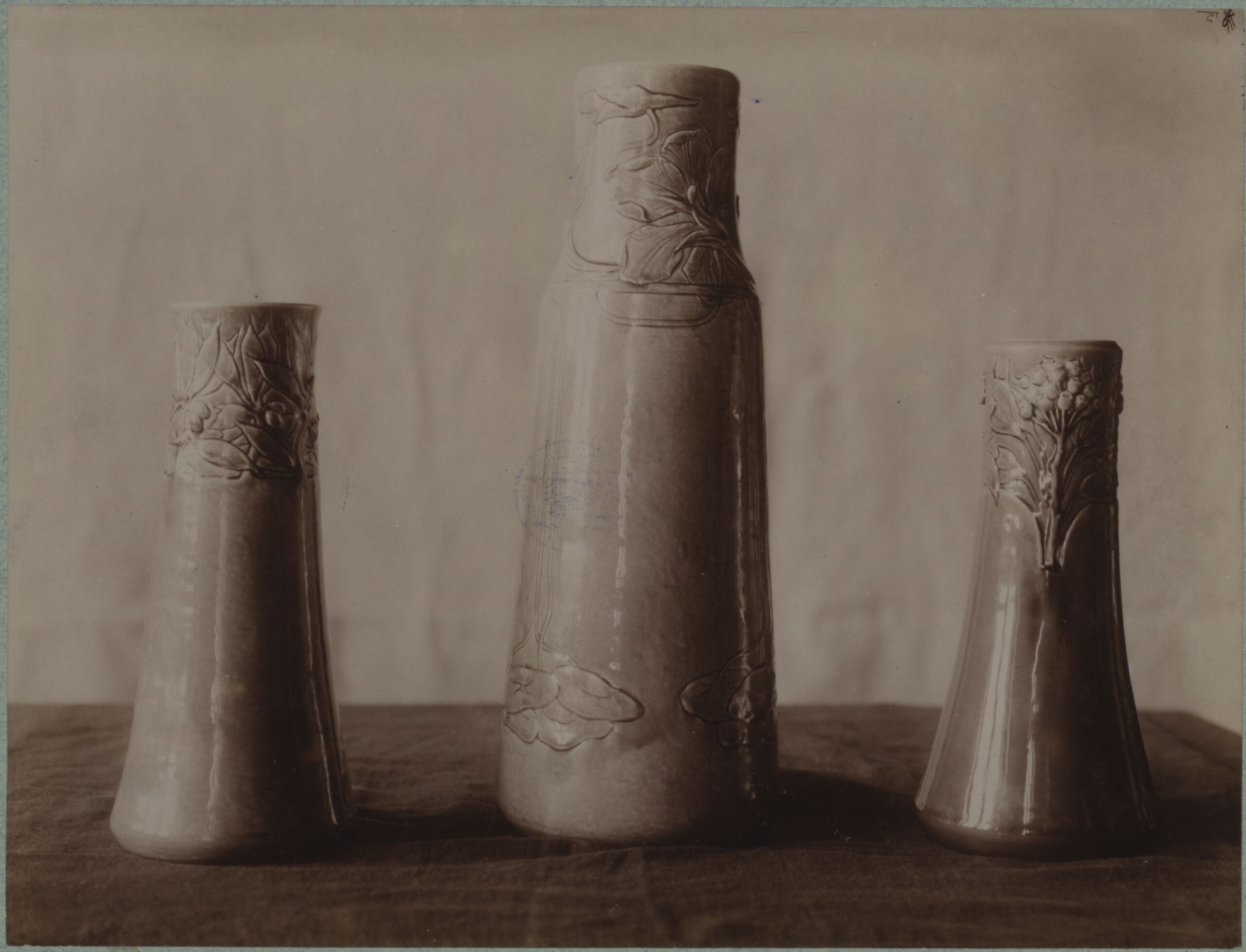 photograph, Fotografie von drei Blumenvasen, gefertigt in der Kunstgewerbeschule in Prag, Kunstgewerbeschule (Prag), MAK Inv.nr. KI 7647-42