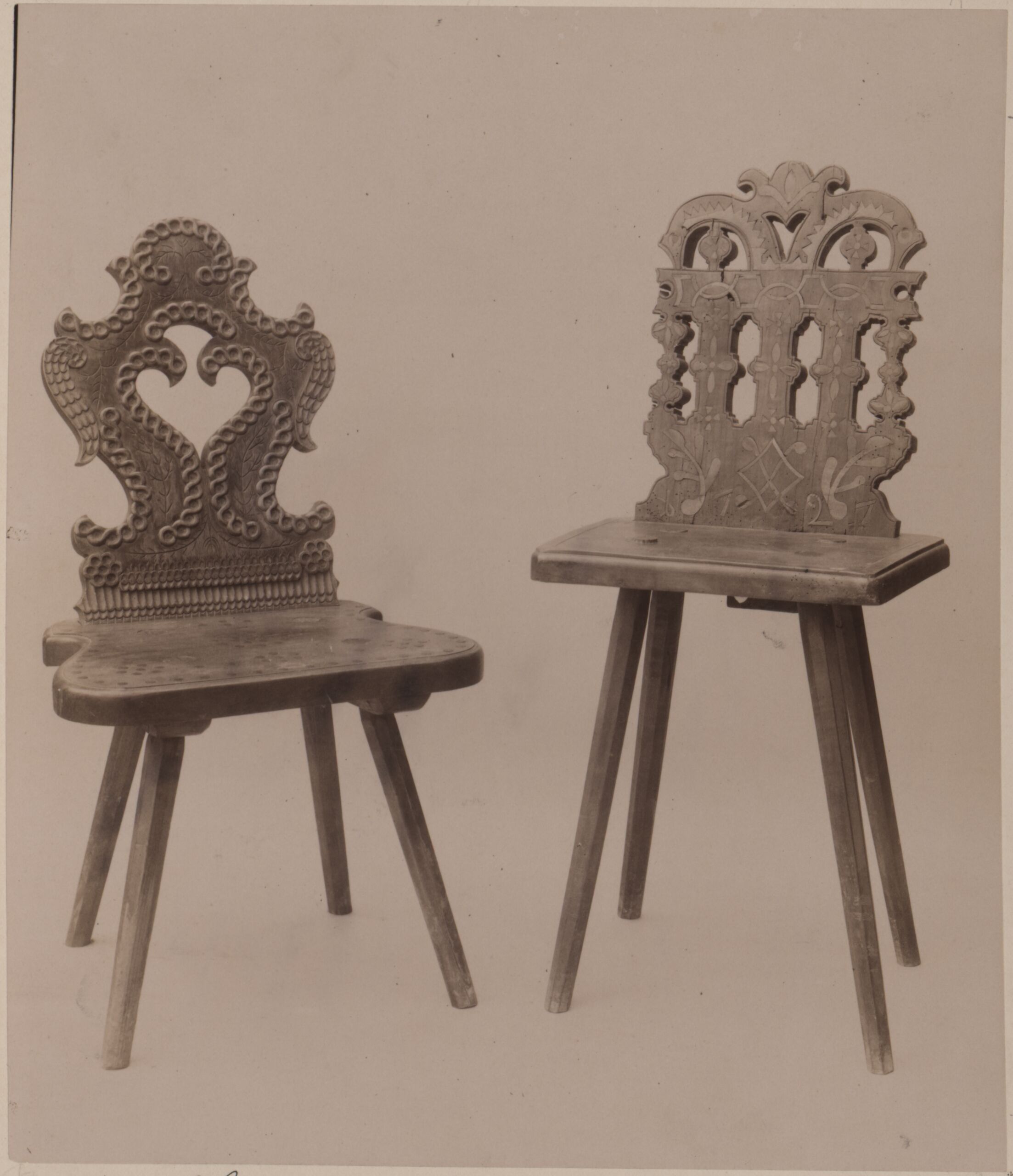 photograph, Fotografie zweier Bauern-Sessel mit Schnitzereien bzw. Intarsien, Wilhelm Gmeiner, MAK Inv.nr. KI 7717-346