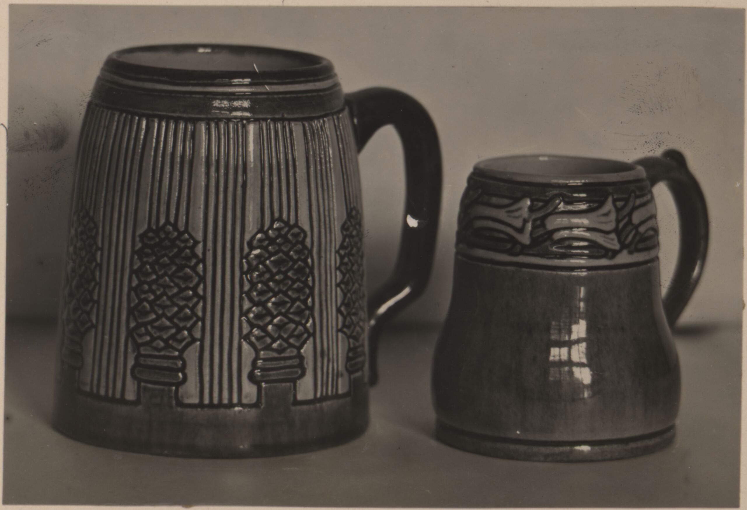 photograph, Fotografie zweier Keramik-Trinkkrüge, von M. L. Benson und von A. Robinson, beide vom New Comb College in New Orleans, Anonym, MAK Inv.nr. KI 9475-2-4