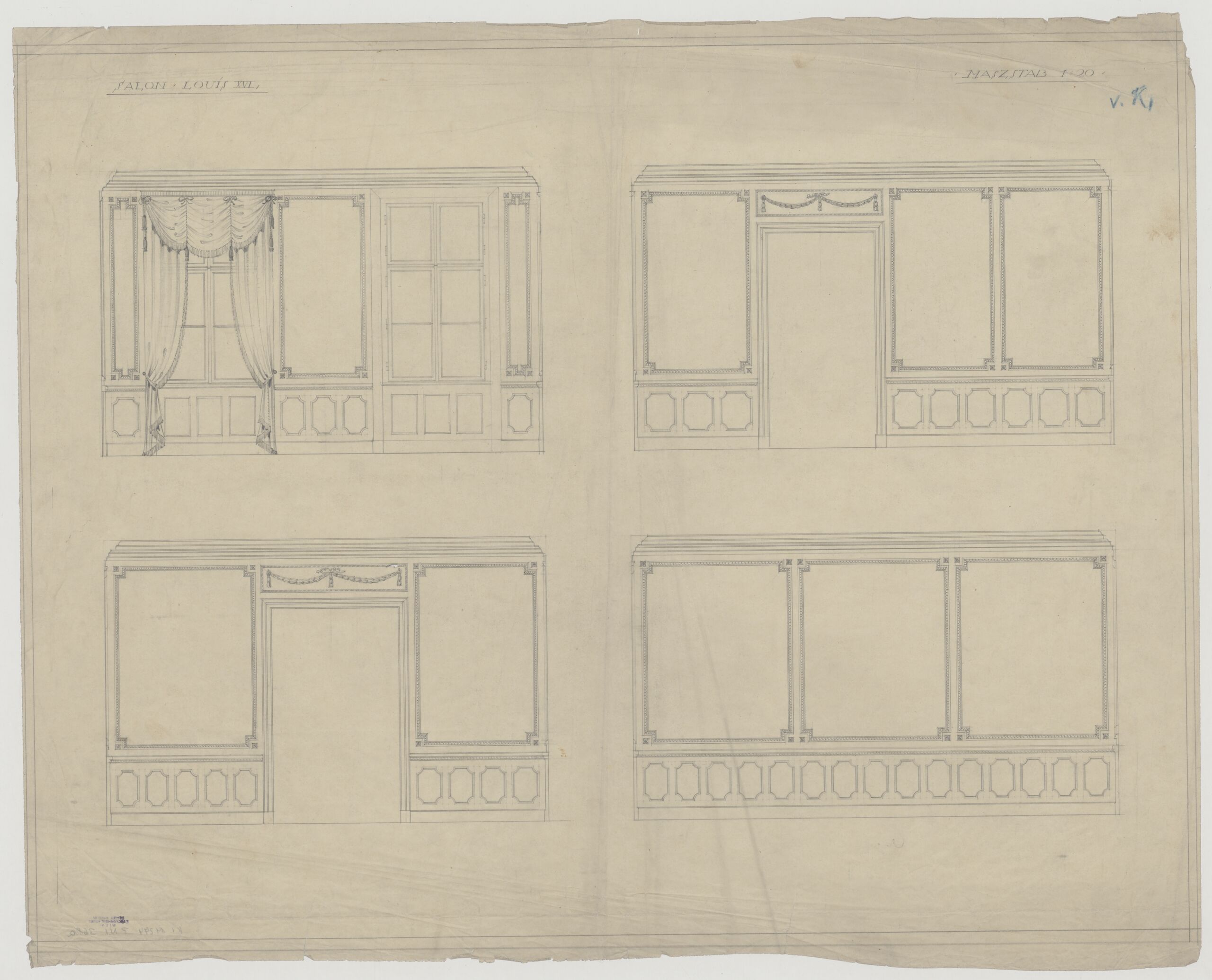 • Wandabwicklung, Four wall elevations for the Louis XVI salon, Otto Prutscher, MAK Inv.nr. KI 14274-368-1