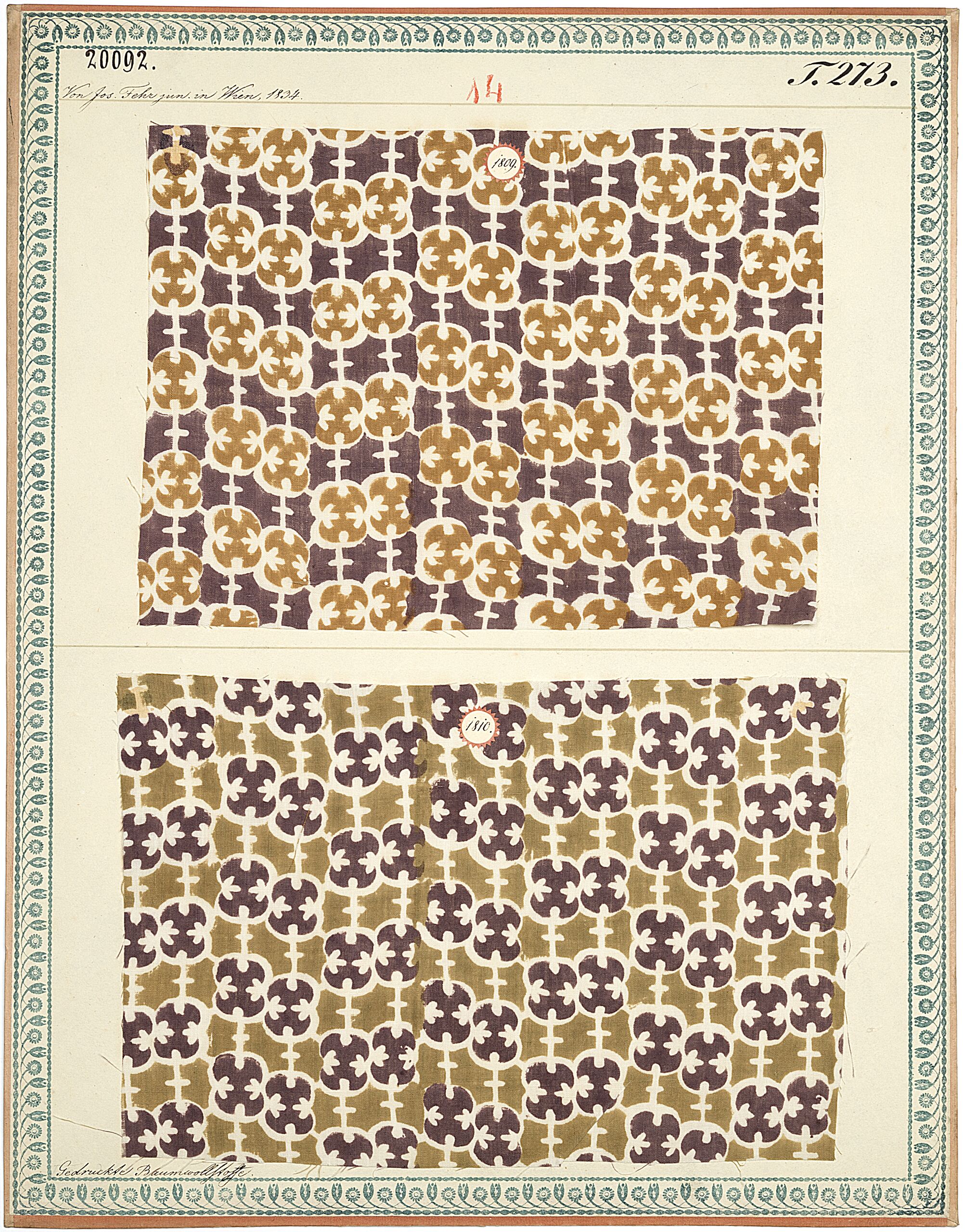 - label (front) : Von Jos. Fehr jun. in Wien, 1834. / Gedruckte Baumwollstoffe.