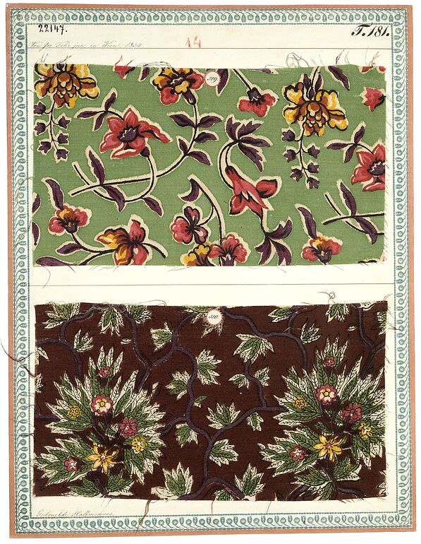 - label (front) : Aus Jos. Fürganter's Seidenzeugmanufactur in Wien, 1838. / Gedruckte glatte Schafwoll-Musseline (Musellines de laine) aus Schaf- u. Baumwolle.