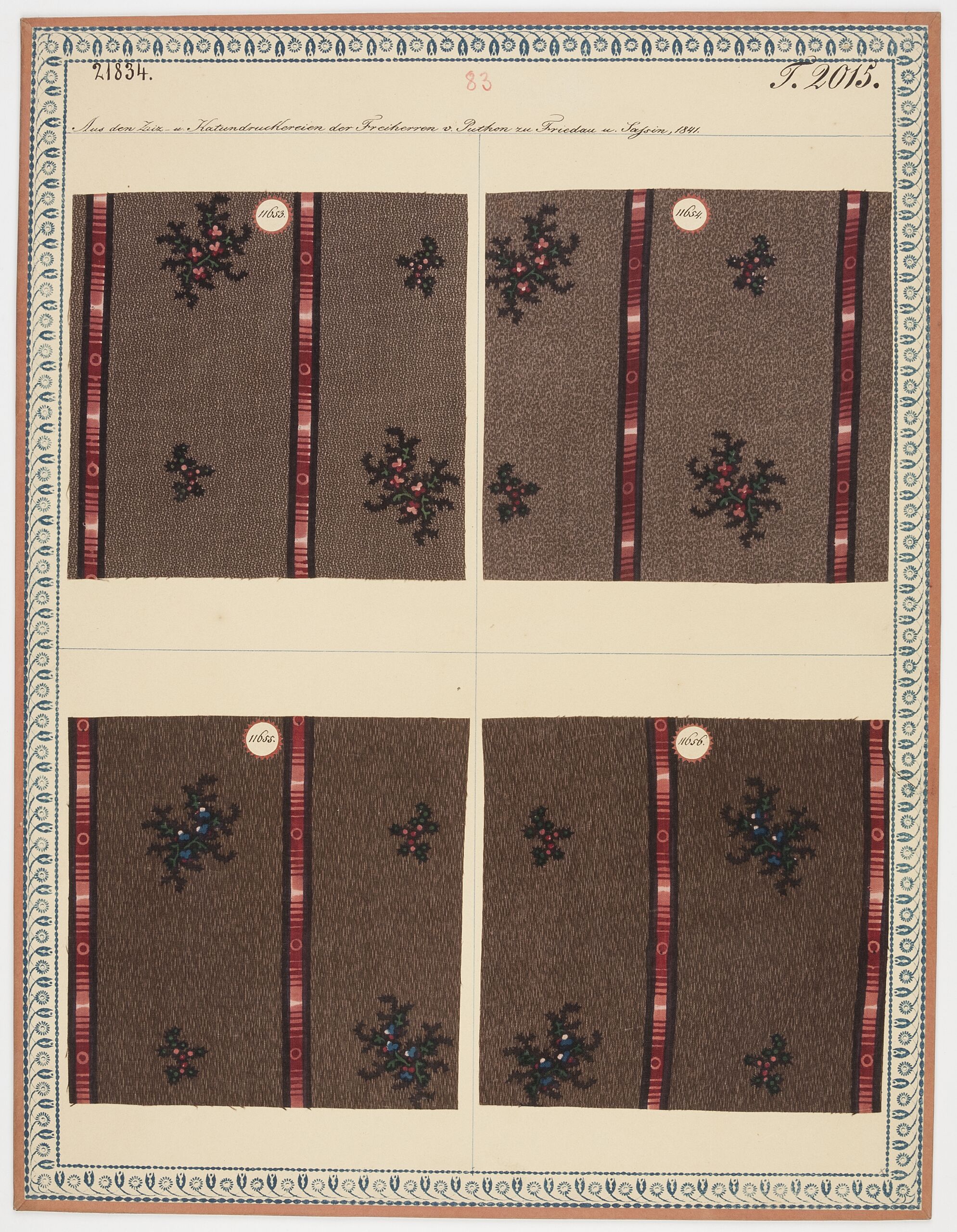 - label (front) : Aus den Ziz- u. Kattundruckereien des Freiherren v. Puthon zu Friedau u. Sassin, 1841. / Gedruckte Kammertücher.