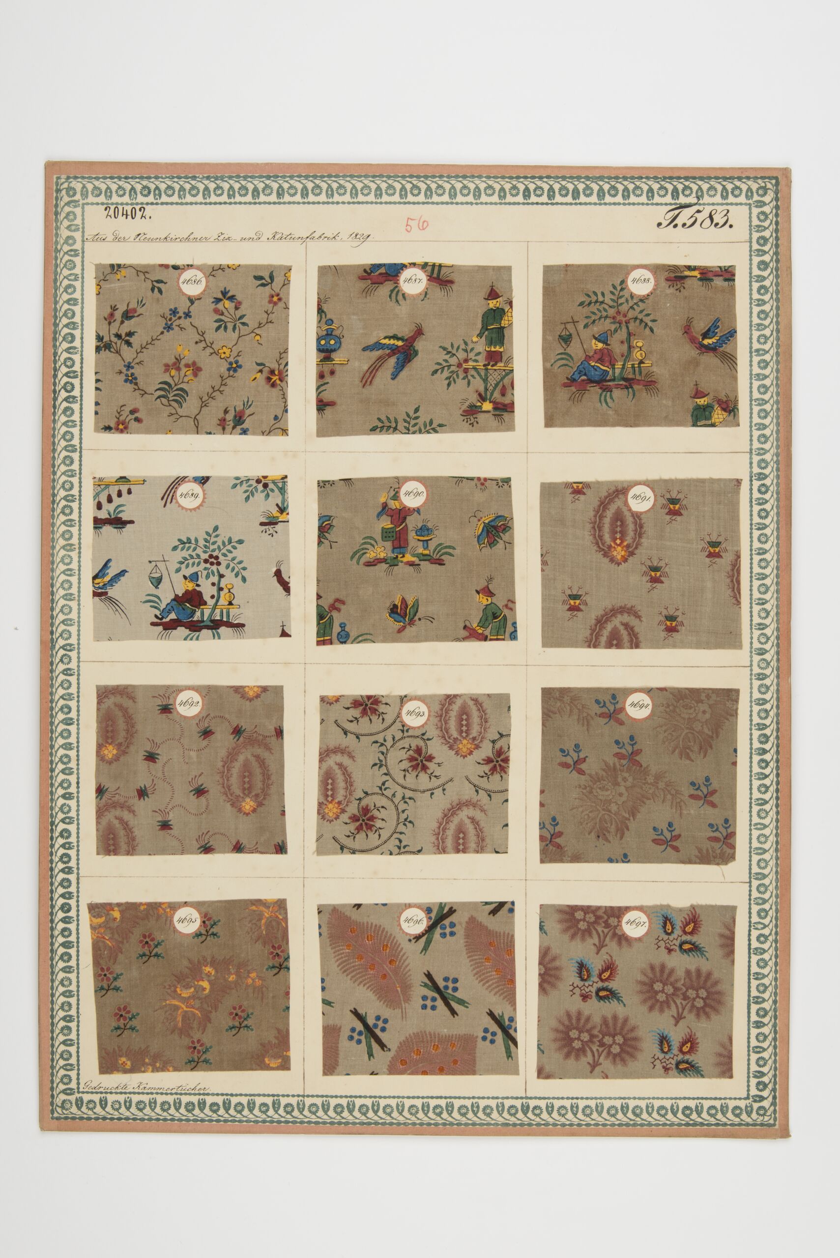 swatch board, Gedruckte Kammertücher, Du Pasquier et Comp. Du Bois, MAK Inv.nr. TGM 20402