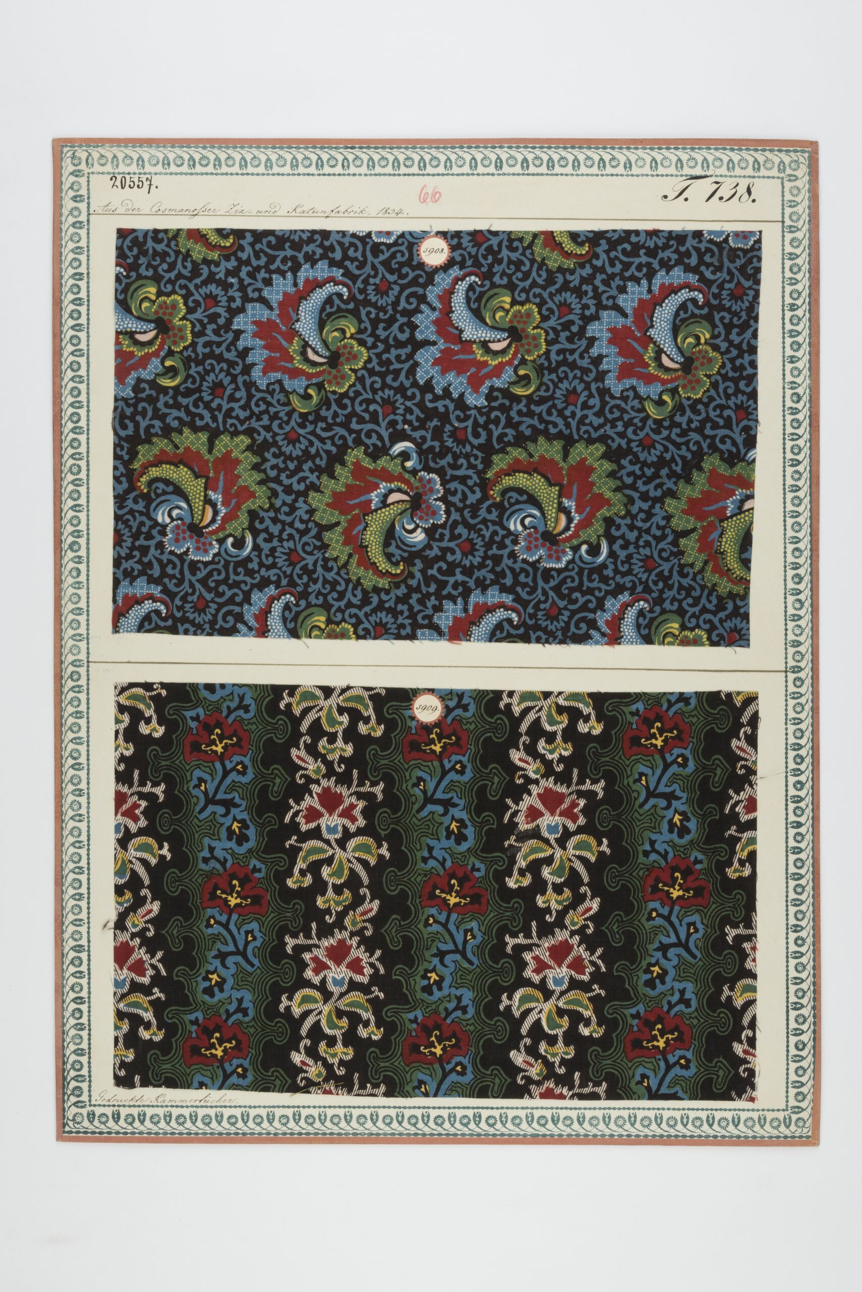 - label (front) : Aus der Cosmanosser Ziz- und Kattunfabrik, 1834. / Gedruckte Kammertücher.