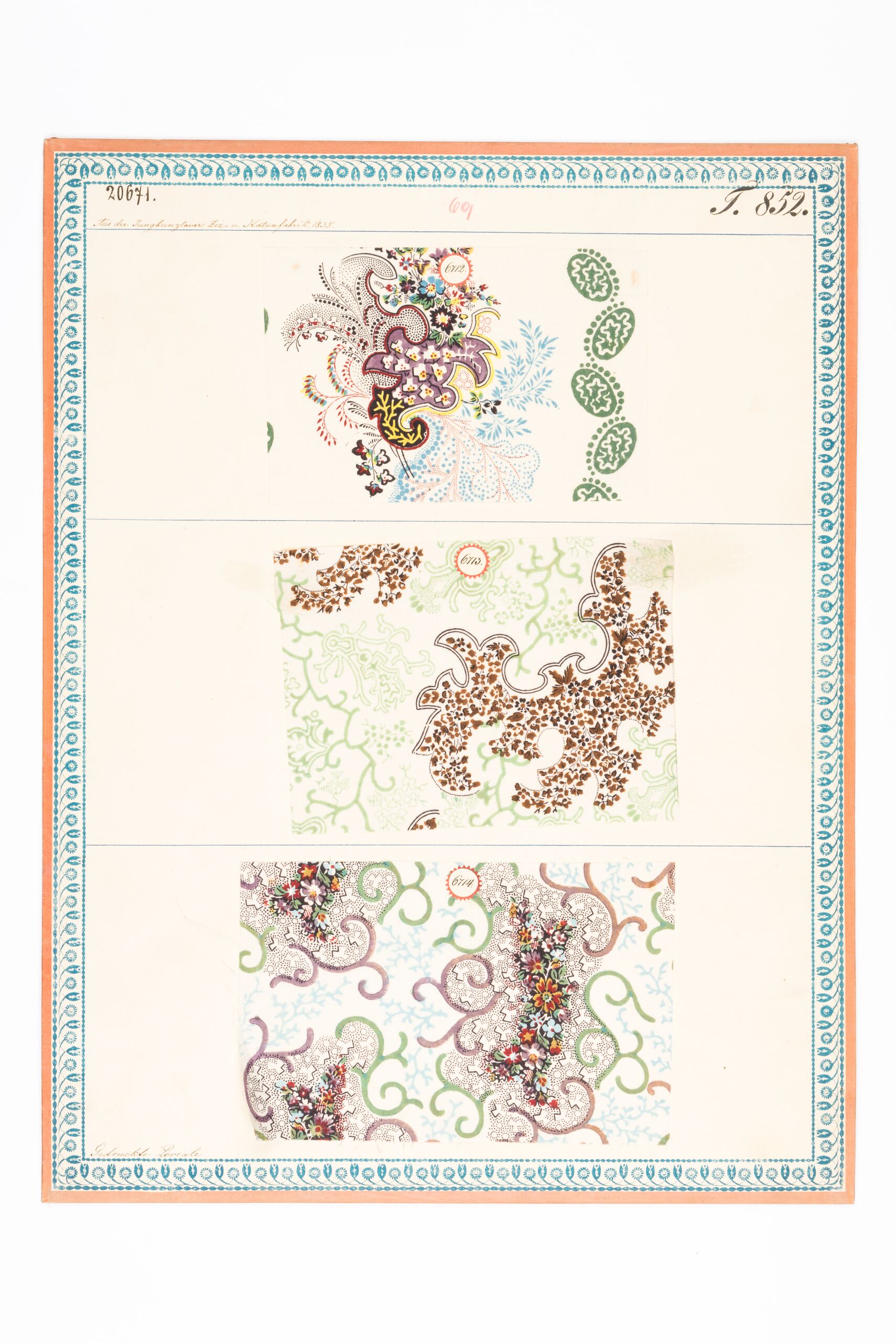 - label (front) : Aus der Jungbunzlauer Ziz- u. Kattunfabrik, 1835. / Gedruckte Kammertücher.