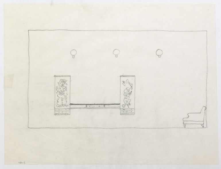 ground plan, Grundriss der Gästewohnung Firma Denzel, Einzeichnen von Möbeln, Anna-Lülja Praun, MAK Inv.nr. KI 16475-21-14-18-3