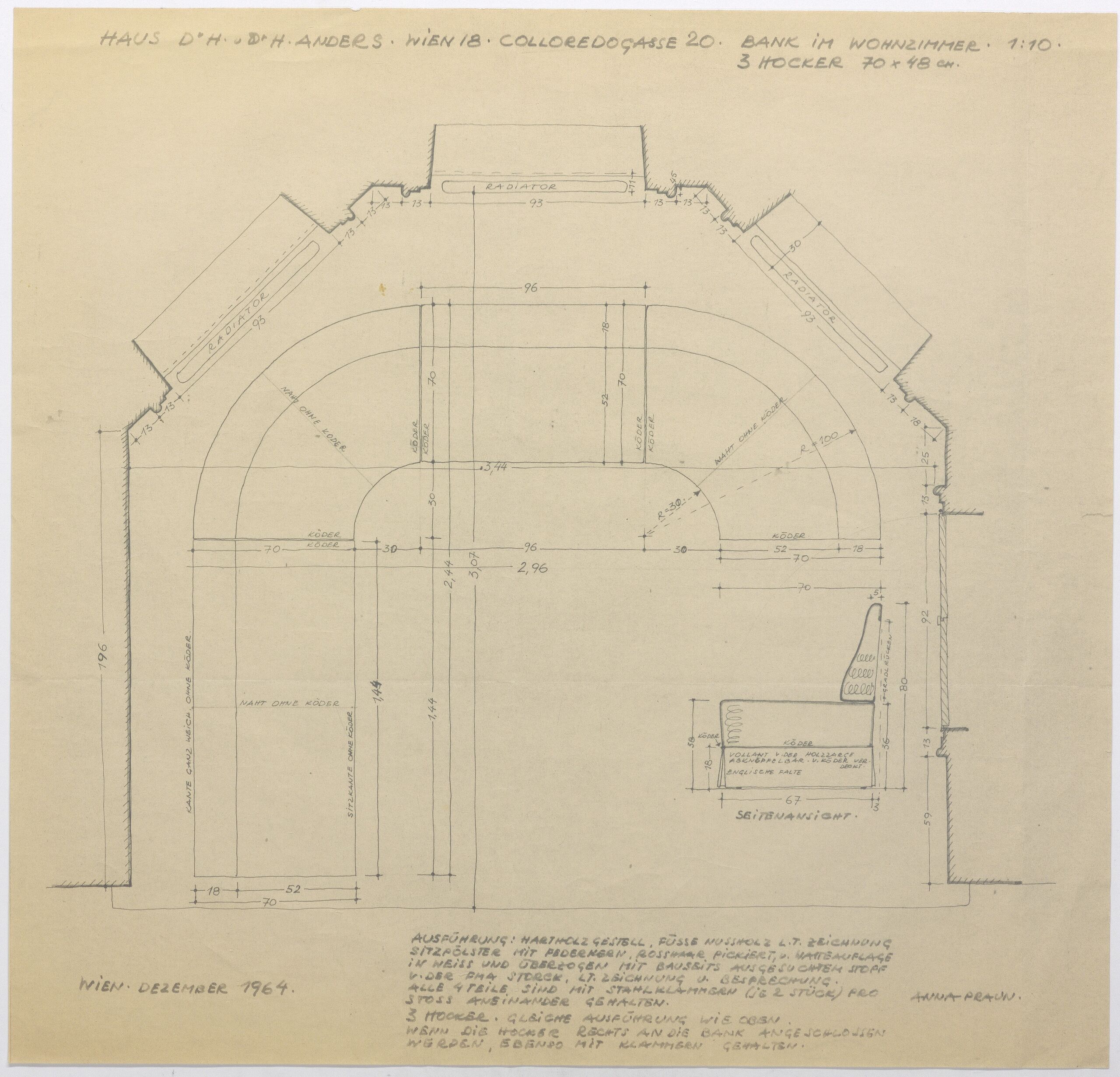 - Haus Dr. H. u. Dr. H Anders, Wien 18, Colloredogasse 20, Bank im Wohnzimmer, 1:10, 3 Hocker 70x48cm (original-language title)
