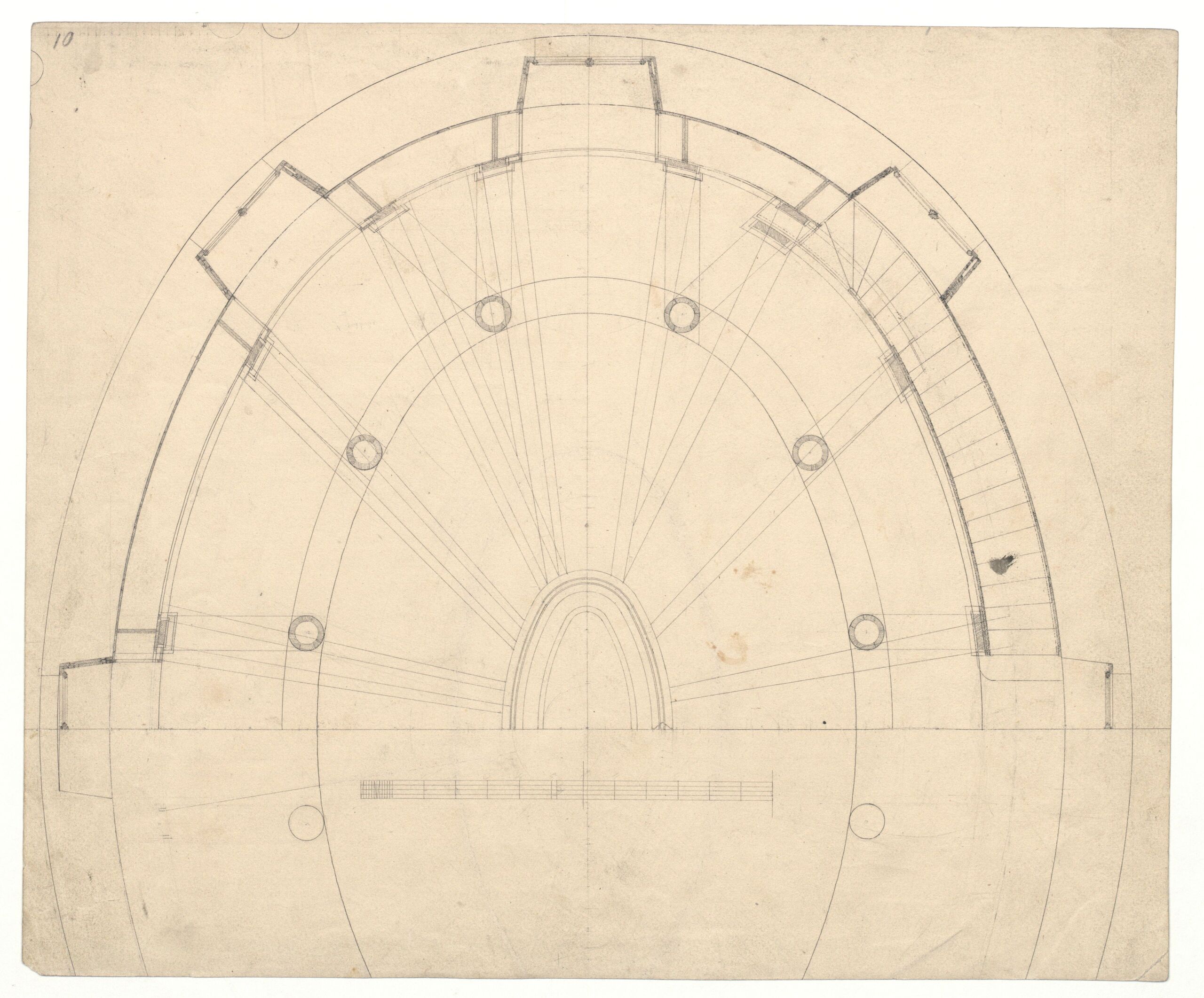 ground plan, Grundriß eines ellipsoiden Zentralbaus, Karl Schmidt, MAK Inv.nr. KI 7710-61