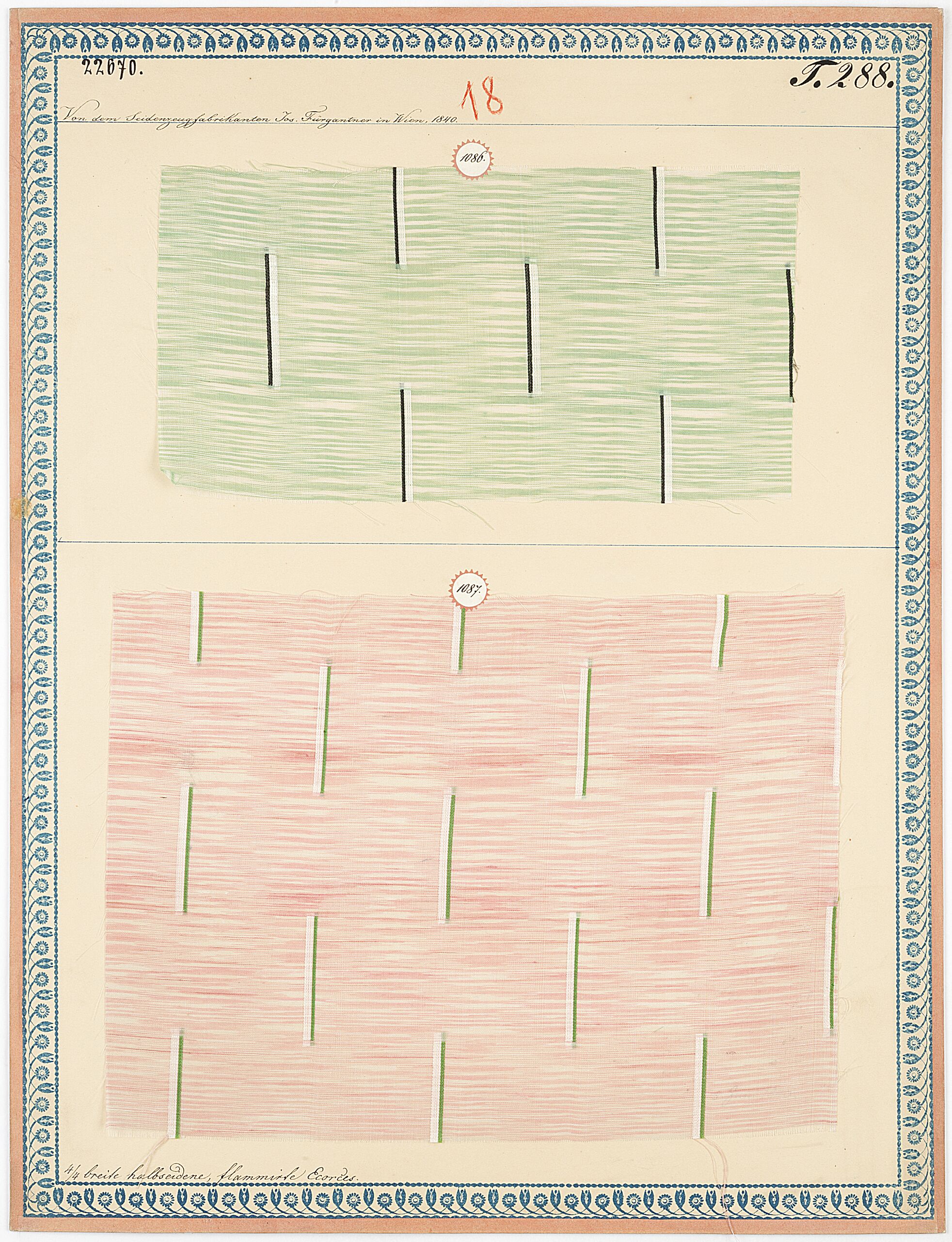- label (front) : Von dem Seidenzeugfabrikanten Jos. Fürgantner in Wien 1840. / Halbseidene, flammirte Ecorces.