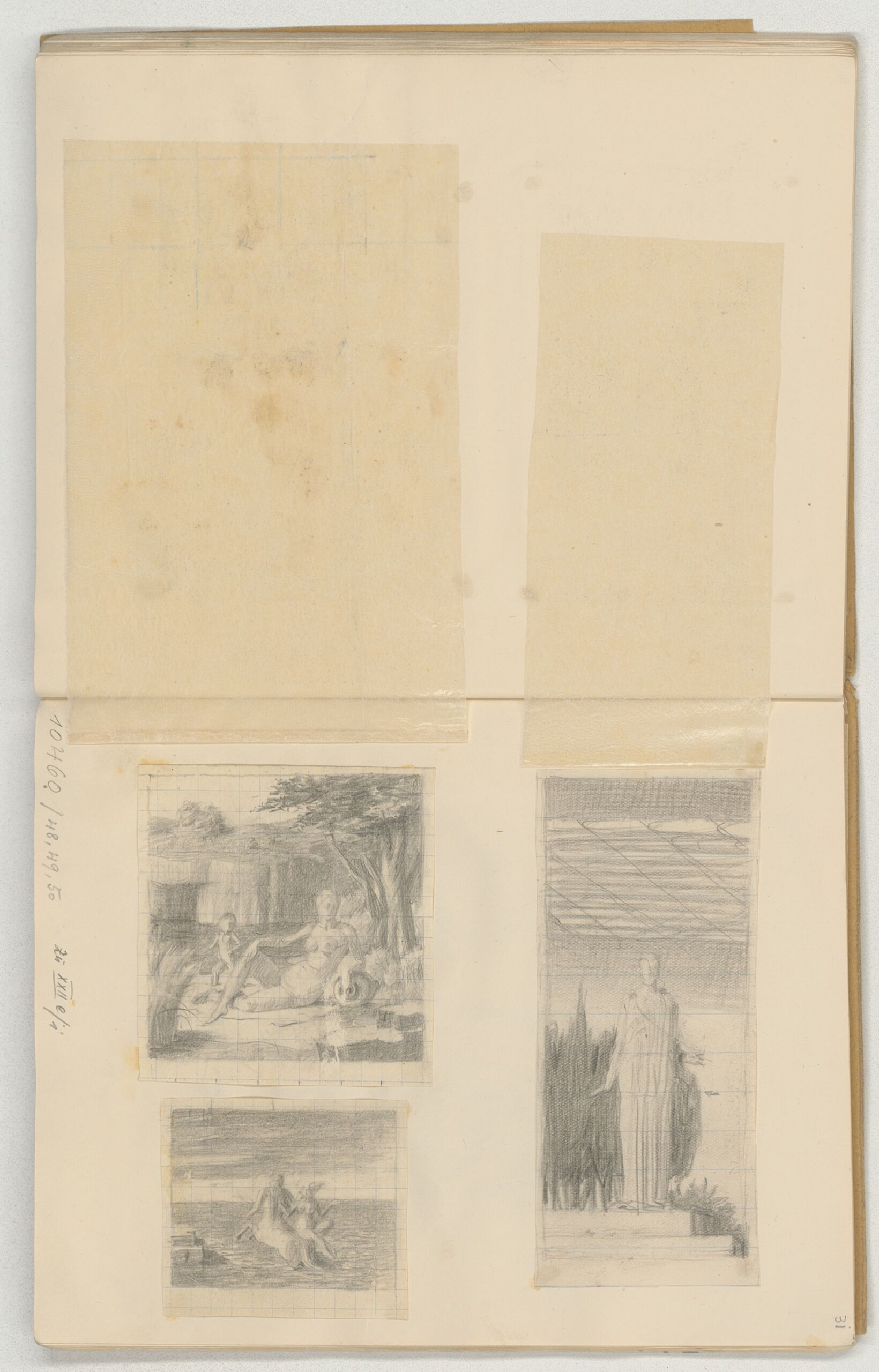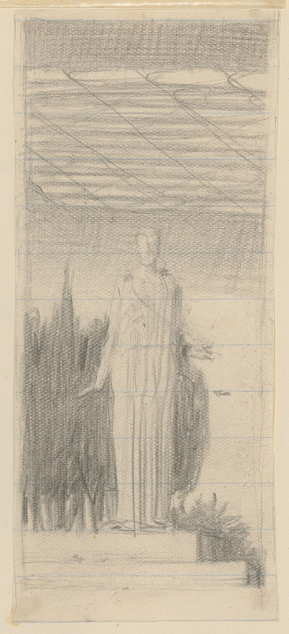 - Intarsienskizze zu einer männlichen stehenden Figur vor einer Baumgruppe (given title)